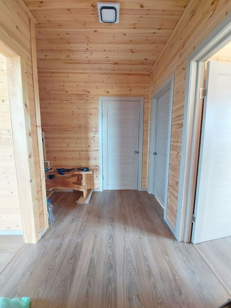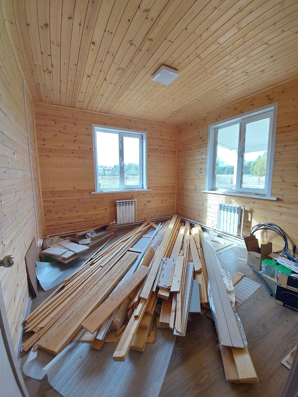 Дом 101 м2 выполнен по каркасной технологии, утепление пол/потолок 200мм. Фундамент свайно-винтовой, крыша металлочерепица, отделка имитация бруса. Полы ламинат + кварцвиниловая плитка, металлическая дверь, окна зимние стеклопакеты.