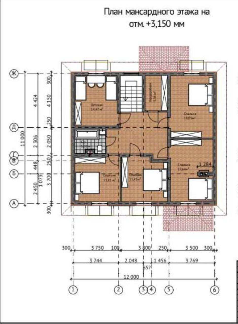 На первом этаже распланированы: кухня-столовая, гостиная, спальня, ванная комната, котельная. На втором этаже: 5 спален , ванная комната.