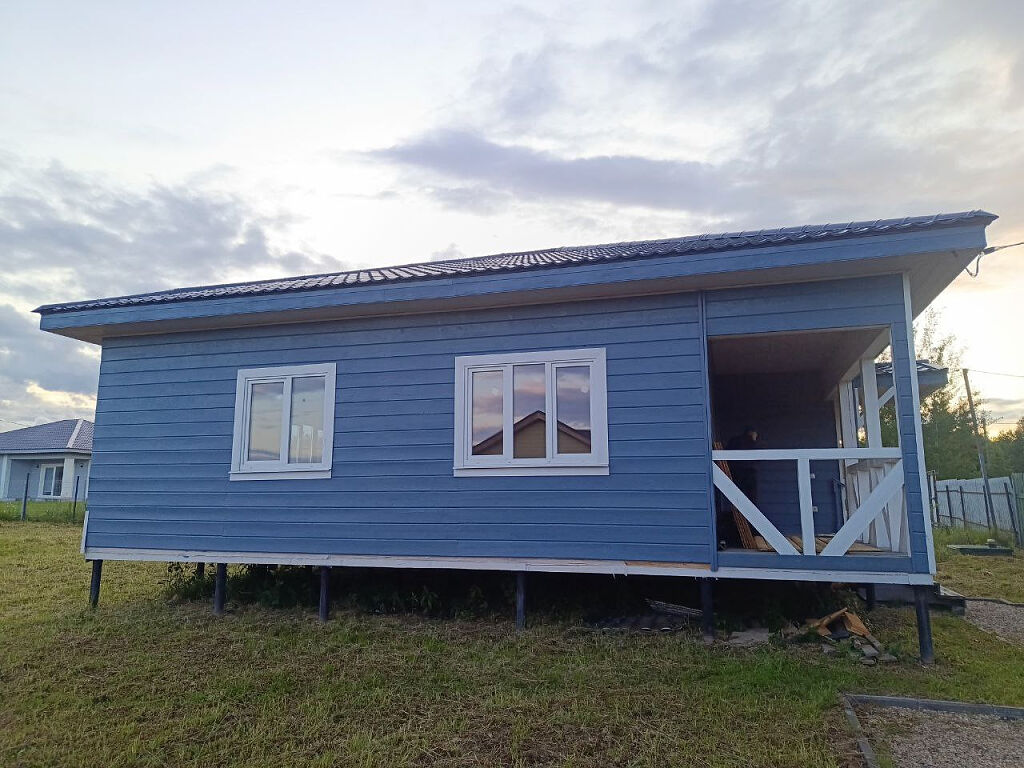 Продаётся новый современный дом. Построен в стиле одноэтажного бунгало с четырёхскатной крышей. Построен по каркасной технологии, с утеплением для зимнего проживания, толщина стен 19см, утепление полов и потолка 20см.