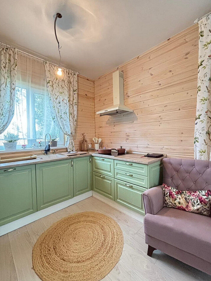 · Отделка: внешняя и внутренняя — имитация бруса (стильно и экологично).
