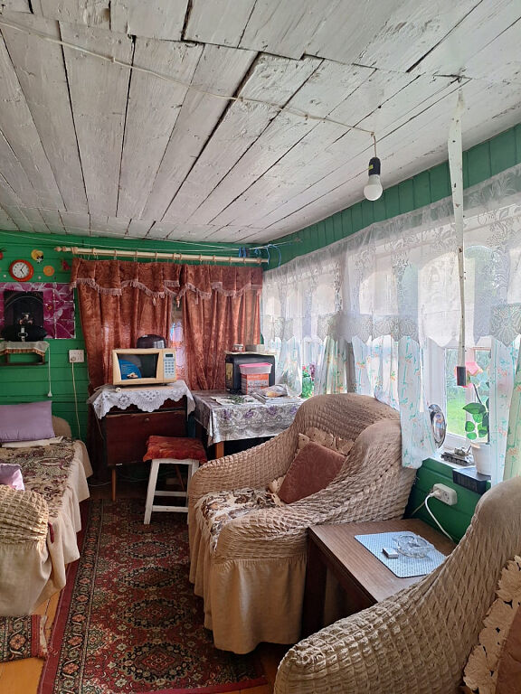 Фундамент ленточный, Дом из бревна кругляк. Отопление : твердотопливный котел на дровах. Вода - скважина на участке. Сан узел-выгребная яма.