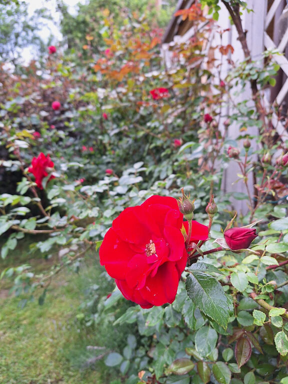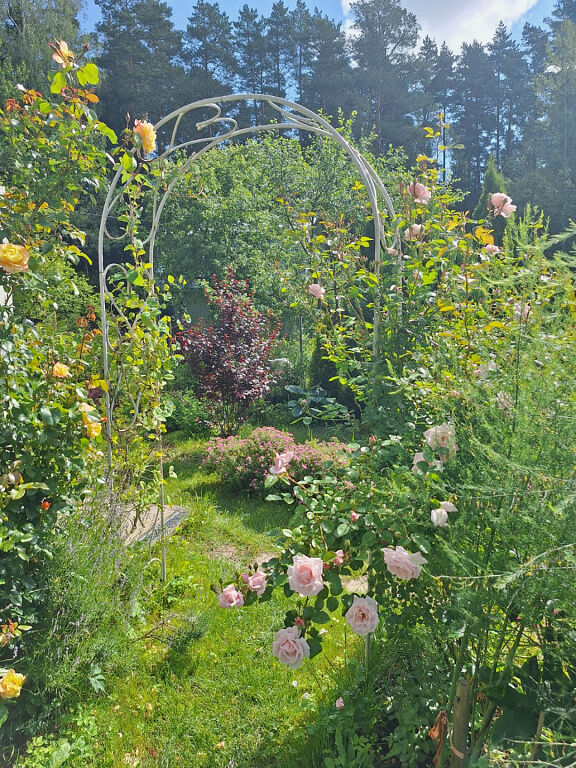- Плодовые деревья и ягодные кустарники: вишня, черешня, малина, ежевика, голубика, жимолость, смородина, арония, ирга, черемуха, рябина.
