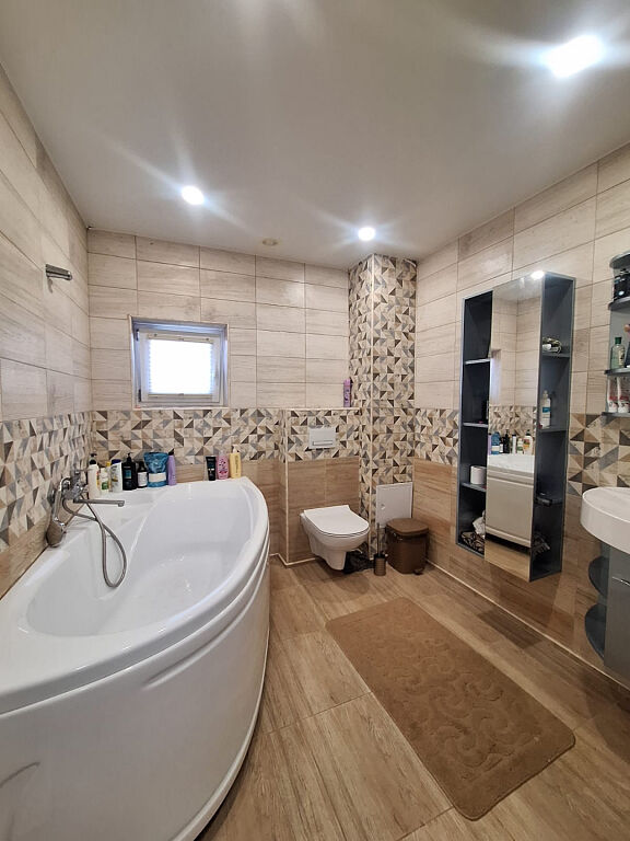Дом 180 кв. метров. ,блочный, фундамент ленточный плюс плита, Первый этаж: теплый пол от электричества, платежи небольшие.