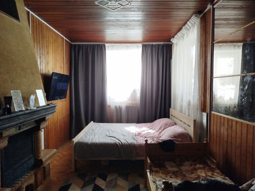 1 этаж: прихожая с теплым полом, просторная кухня – гостиная, санузел, изолированная комната с камином; 2 этаж: 3 изолированные комнаты, одна комната с балконом, есть еще один застекленный балкон.