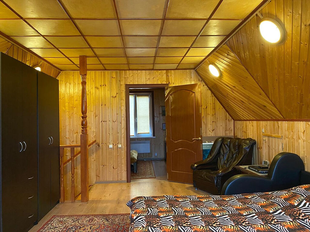 на второй и третьем этажах частично стены обшиты вагонкой.