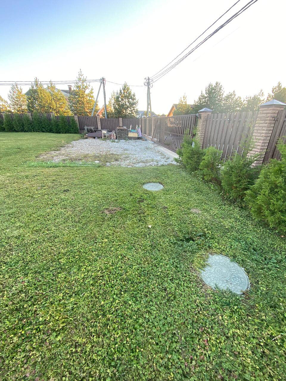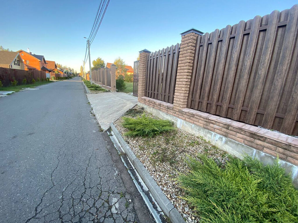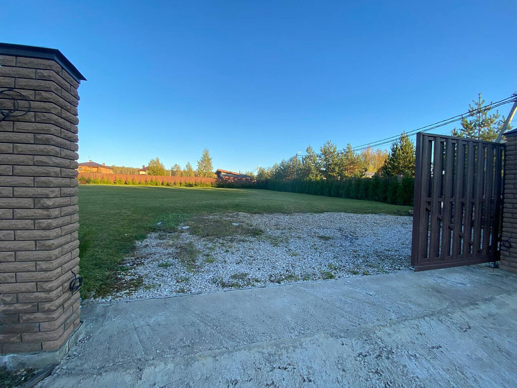 Участок выровнен, выполнен дренаж, подведены коммуникации. Вокруг капитальный забор из кирпича с монолитной лентой (90 м).