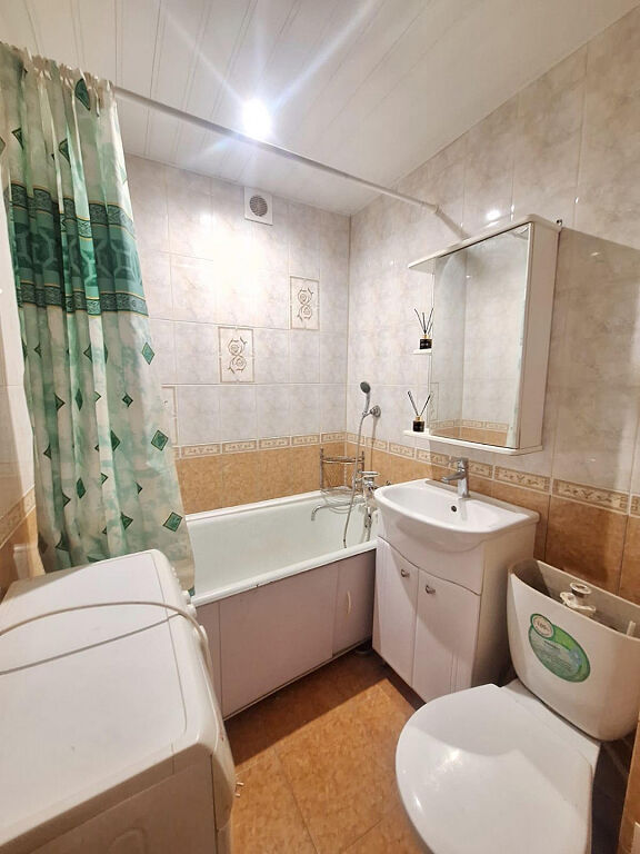 Квартира, площадью 34 кв.м., просторная гостиная с выходом на застеклённый балкон, кухня, коридор, санузел. В квартире установлены пластиковые окна, в санузле выложена плитка.