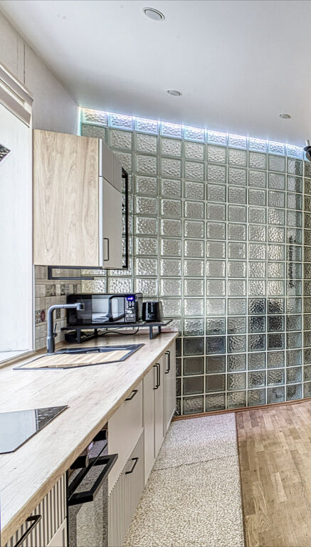 Вся мебель, которая идеально вписана в пространство, изготовлена на заказ и остаётся новому владельцу. Это решение для тех, кто ищет уникальное жильё с характером, не требующее дополнительных вложений.