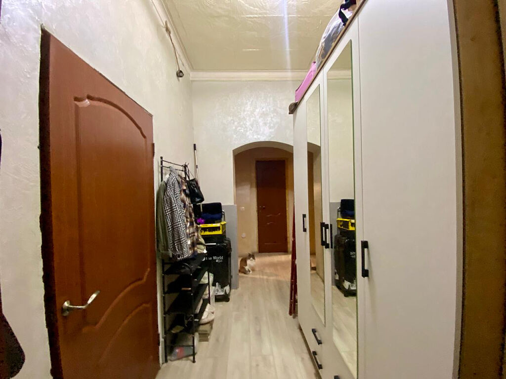 Квартира площадью 46,5 м кв расположена на 1м этаже кирпичного 3х этажного дома "Сталинской" постройки в центре города.