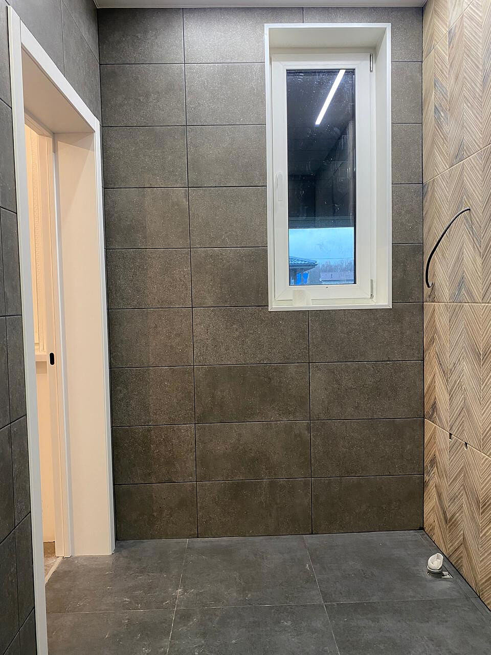 · Полы: На первом этаже — роскошный керамогранит, уложенный «елочкой», с системой водяного теплого пола для невероятного комфорта. На втором — практичный ламинат.