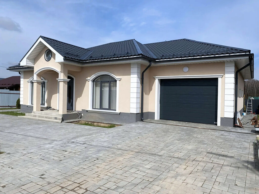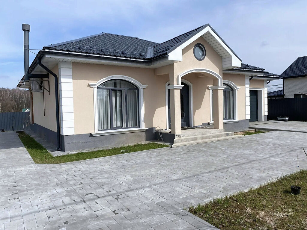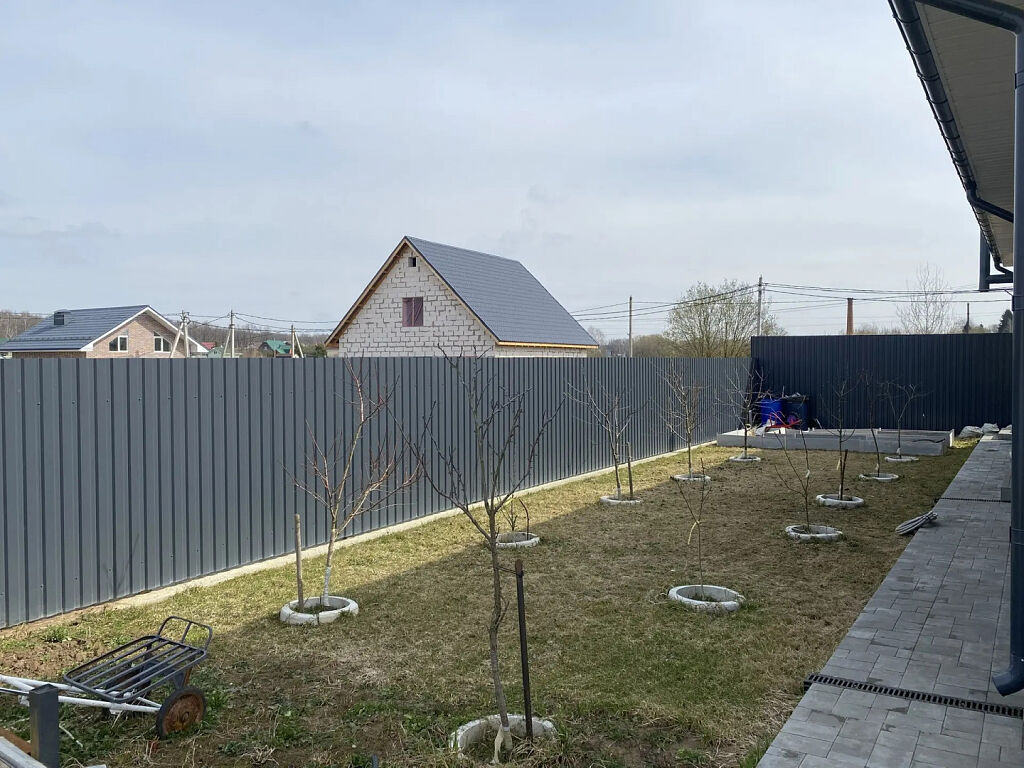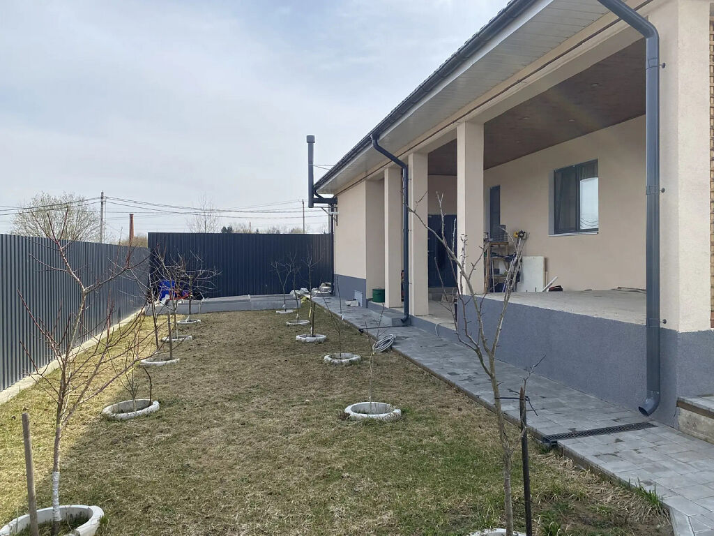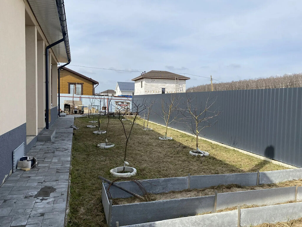 Дом расположен на участке 7 соток. Участок благоустроен, плиткой вымощены дорожки и площадка перед домом, во внутреннем дворике высажен фруктовый сад.