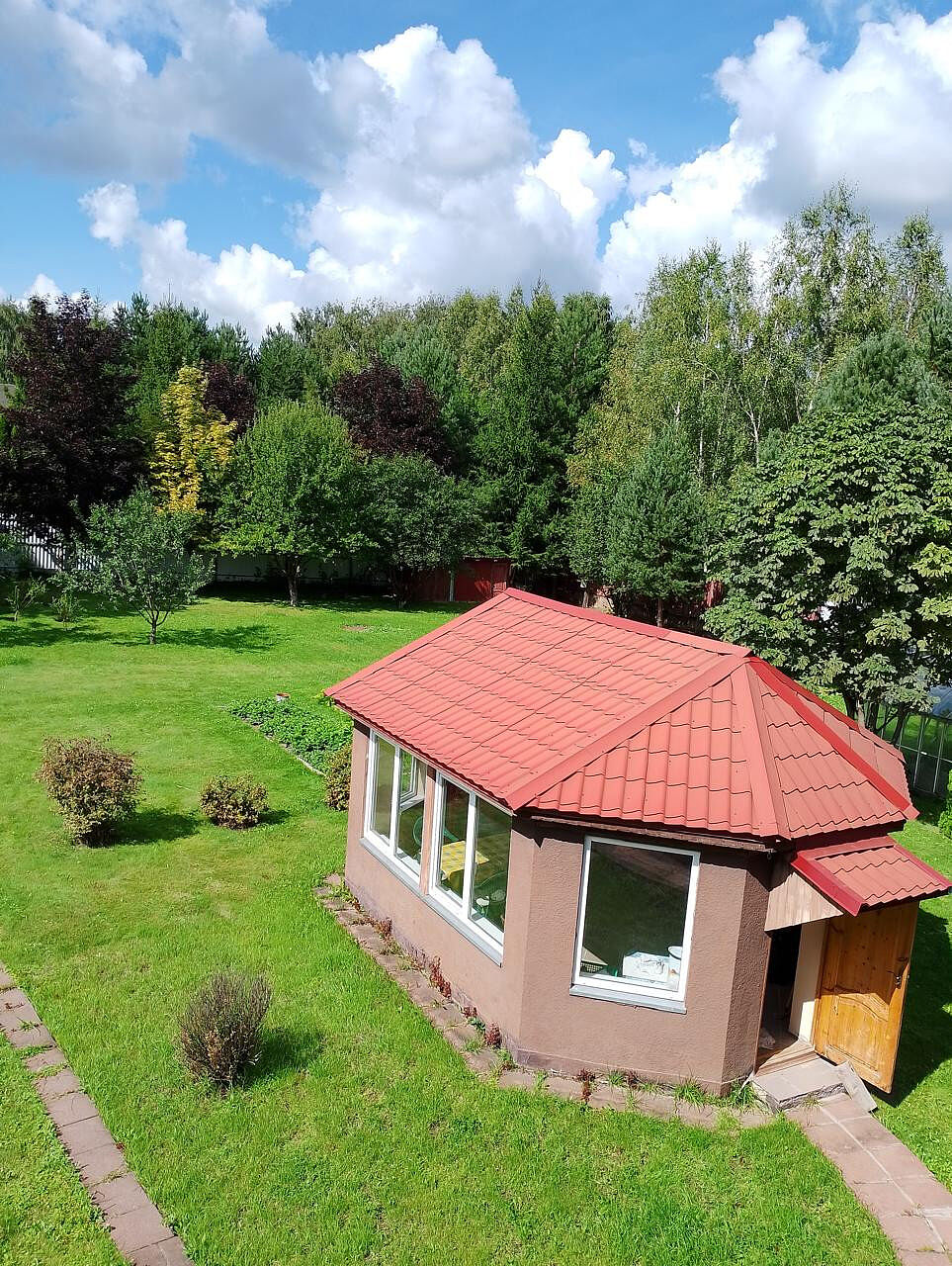 Участок 16 соток расположен в д.Костомарово, выложены дорожки, высажены сосны, еловые и плодовые деревья. на участке есть фундаментальная беседка для отдыха, имеется беседка.