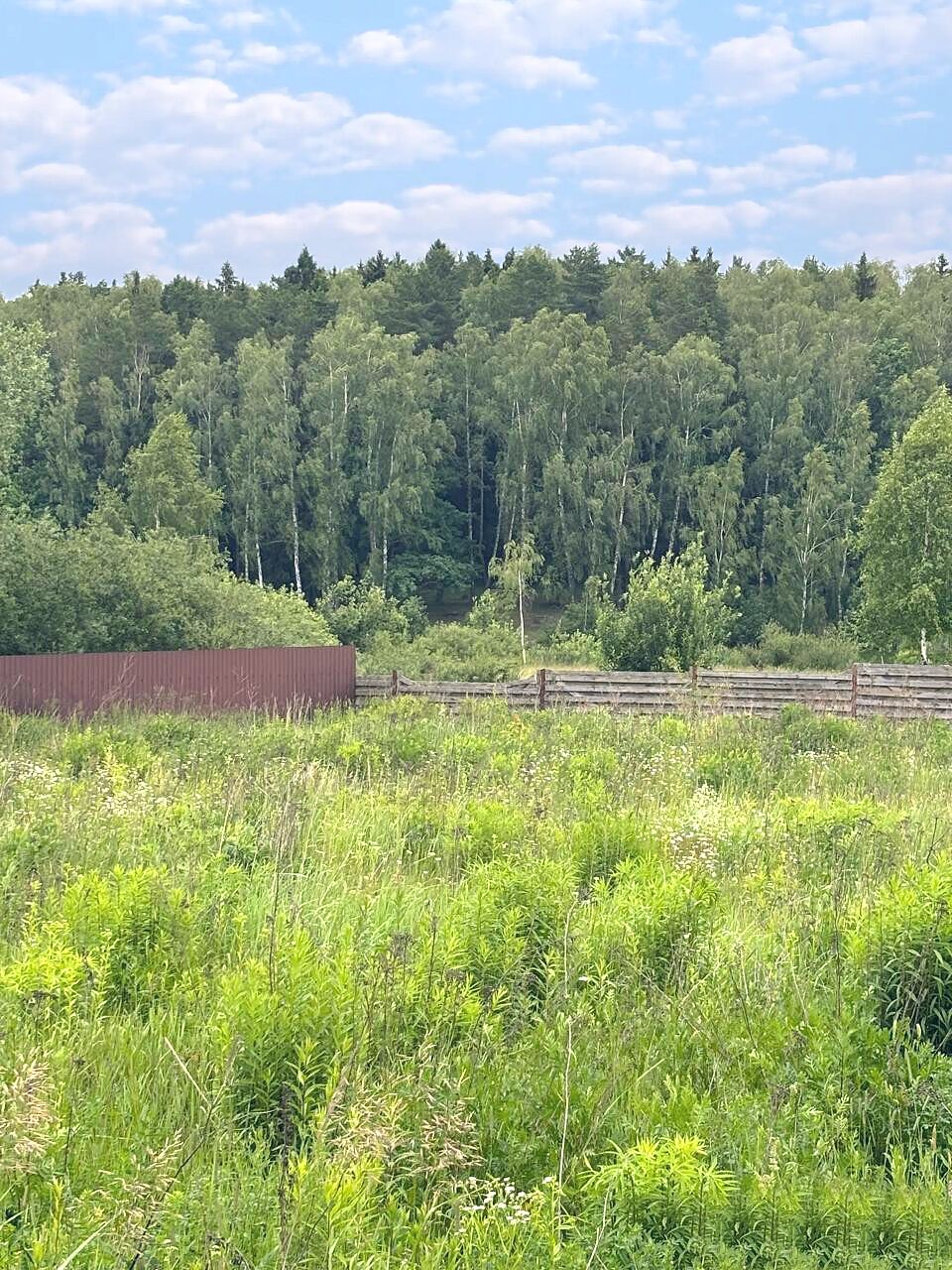 Участок, площадью 18 соток, правильной формы, крайний к лесу, огорожен с трех сторон. К участку ведет асфальтированная дорога.