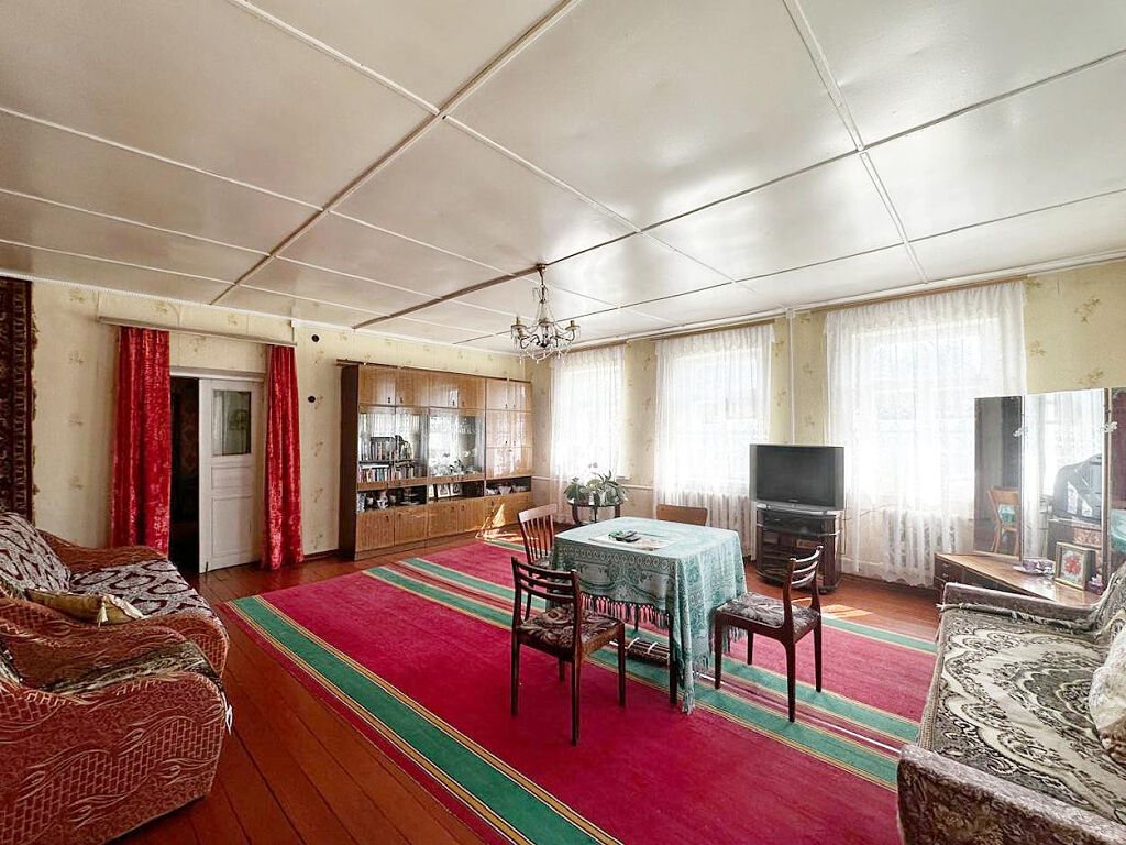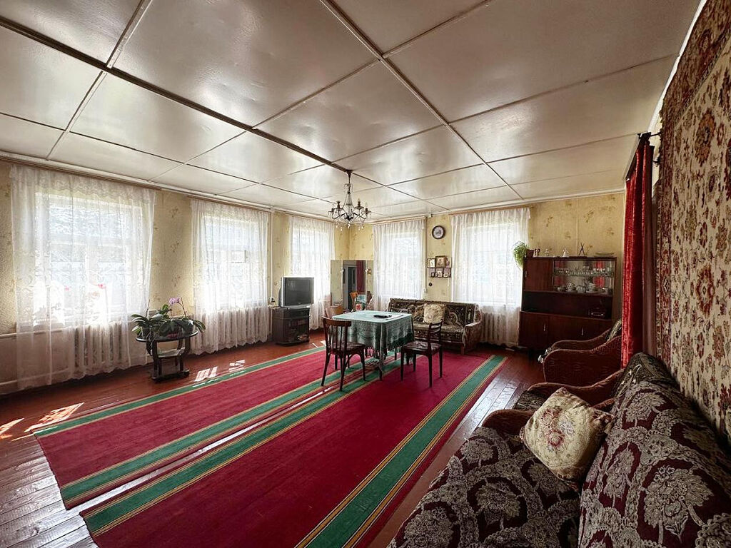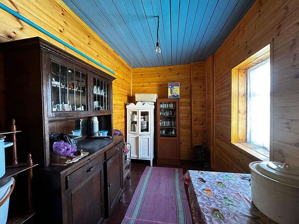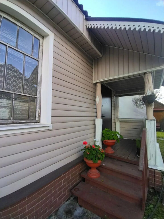 Дом имеет три входа с террасами, все застекленные. За забором на территории 15 соток Вас ждет палисадник, цветы, плодовые деревья и кусты, ухоженный огород, есть сарай с погребом (кессон).