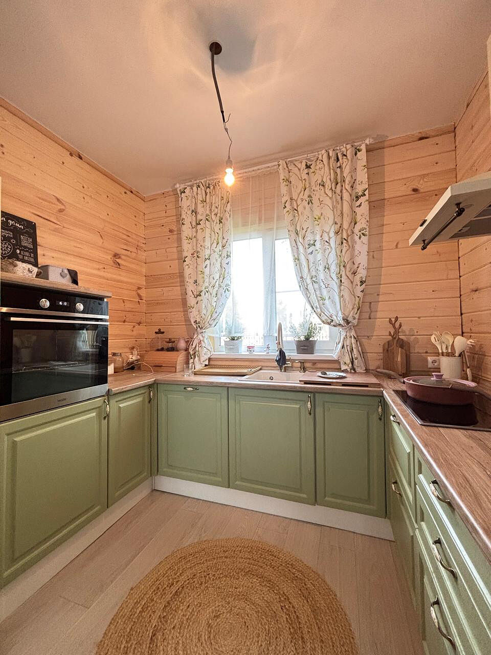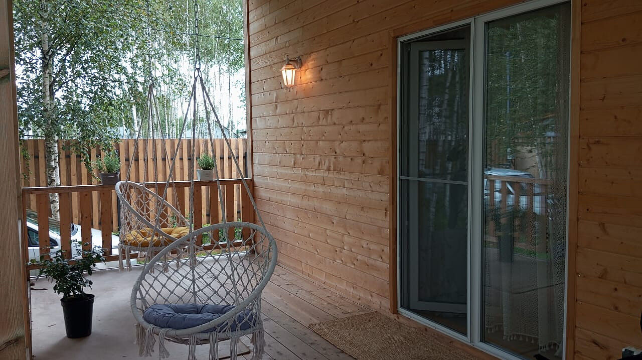 · Отделка: внешняя и внутренняя — имитация бруса (стильно и экологично).