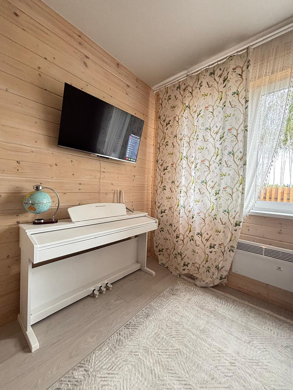 · 1 этаж: светлая кухня-гостиная с выходом на террасу, большое крыльцо 8 кв.м, просторная прихожая, удобная гардеробная и санузел.