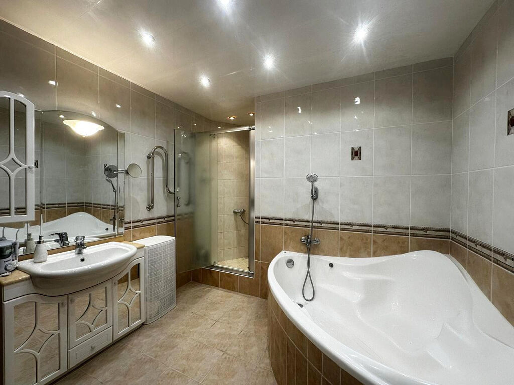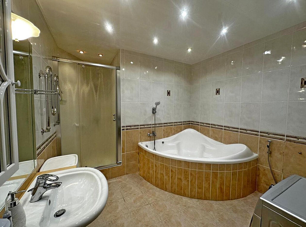 Просторная гостиная, соединенная с кухней, две изолированные спальни, большая застекленная лоджия, большая ванная комната с джакузи и душевой кабиной.