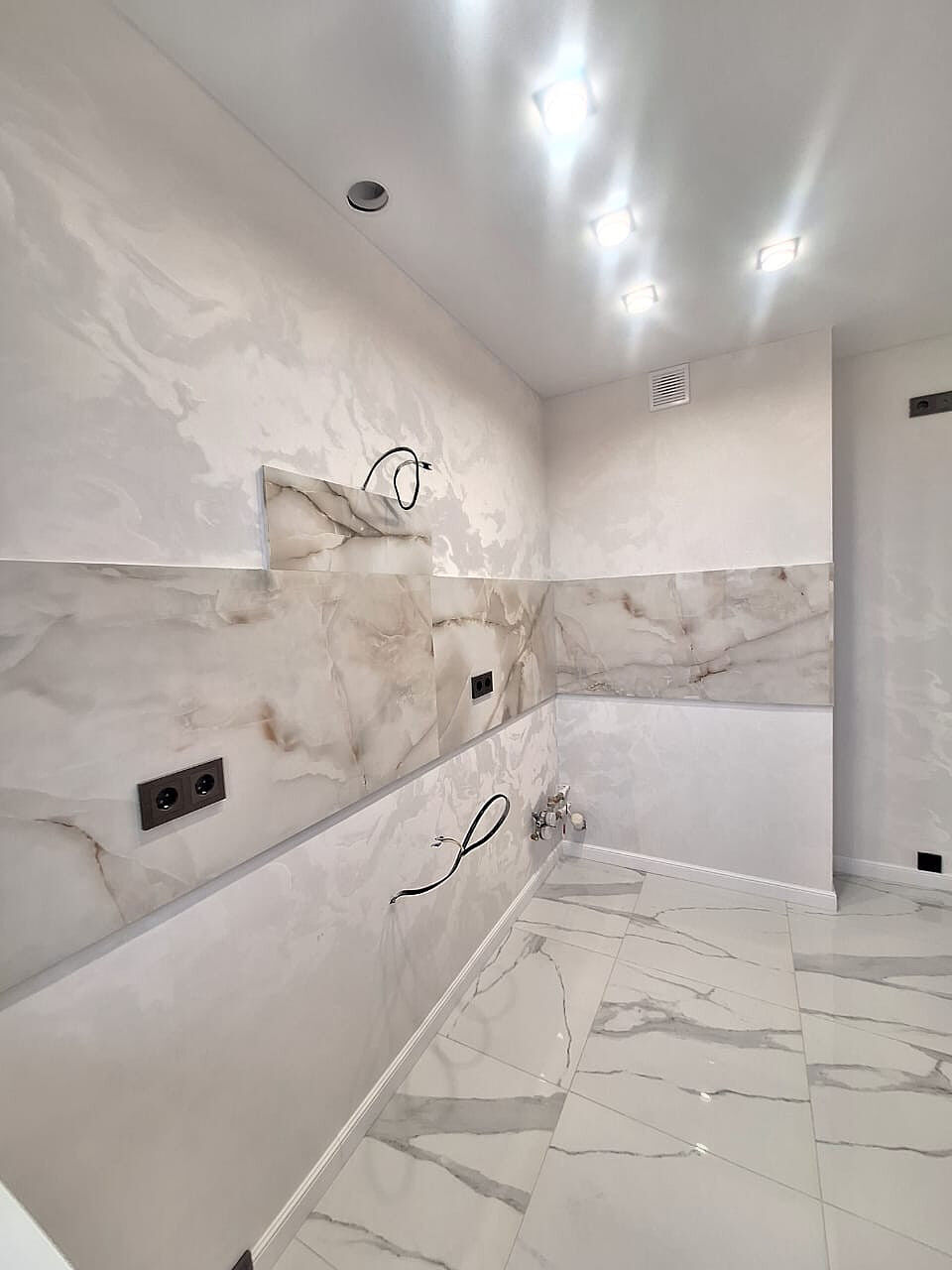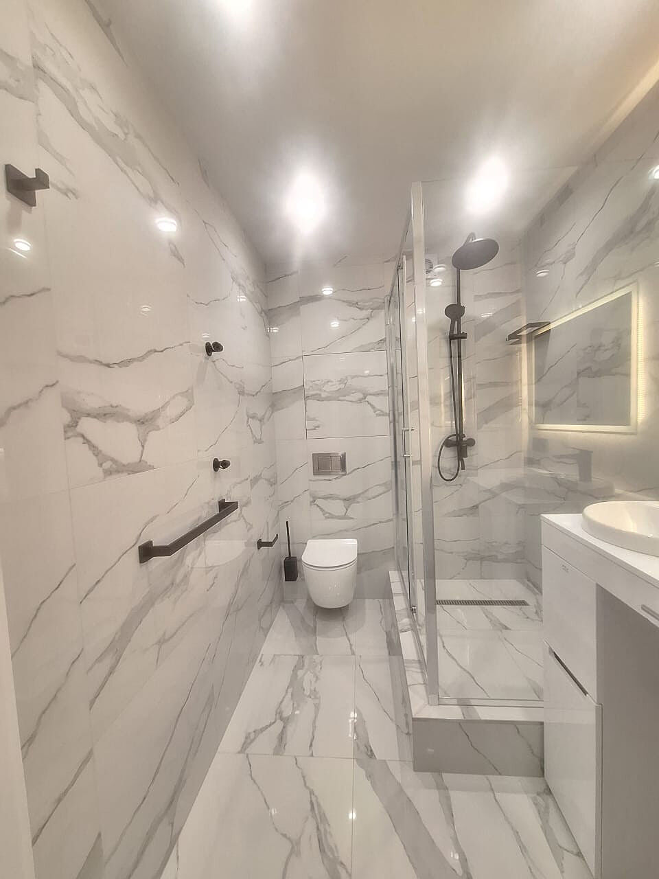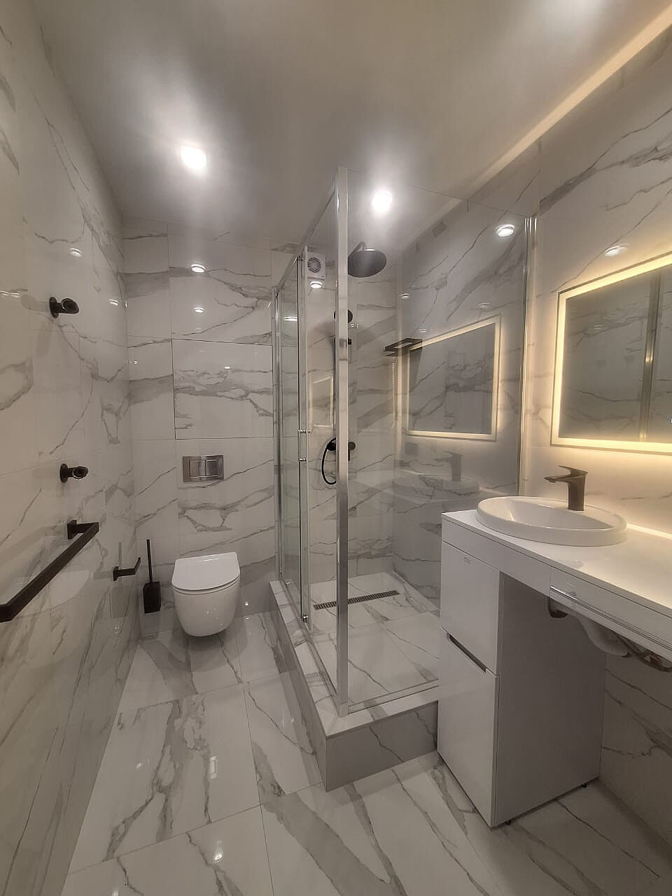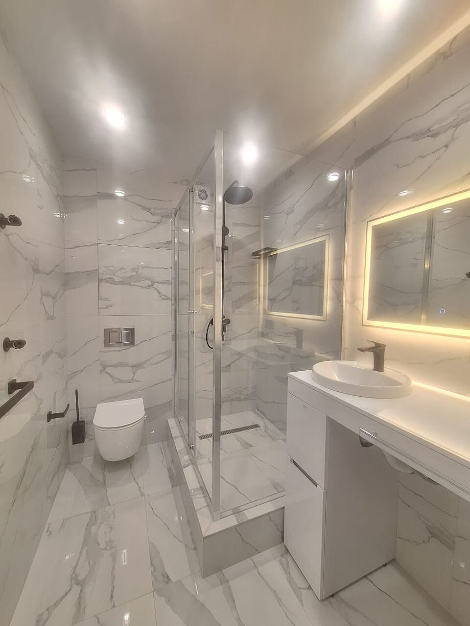 Сан узел выложен плиткой, зеркало с подсветкой, вся сан техника новая.