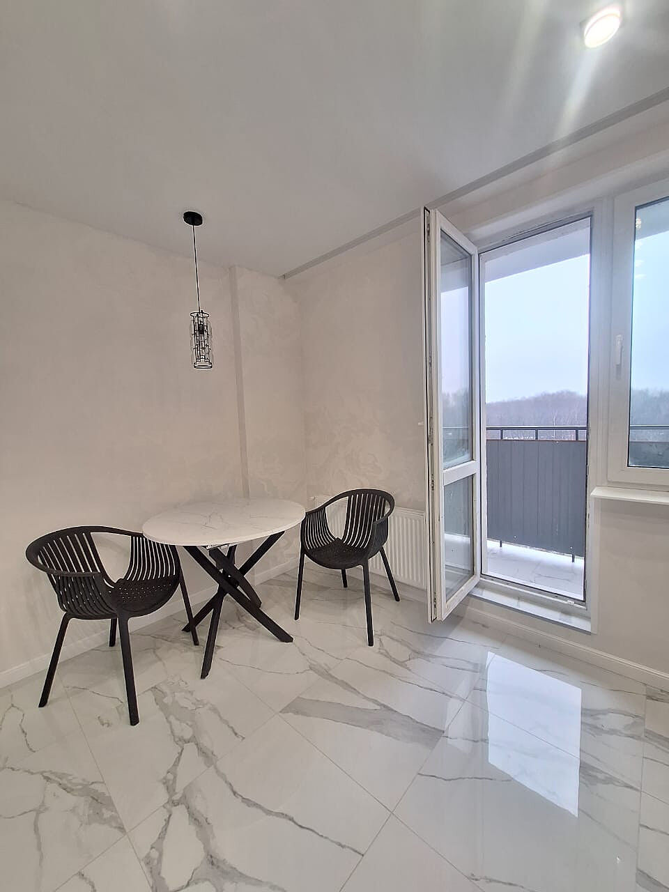 Кухня 9 кв. метров , пол- плитка, выход на лоджию