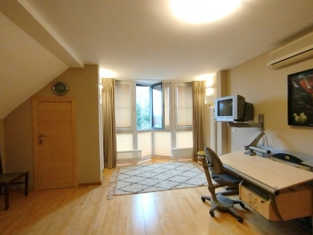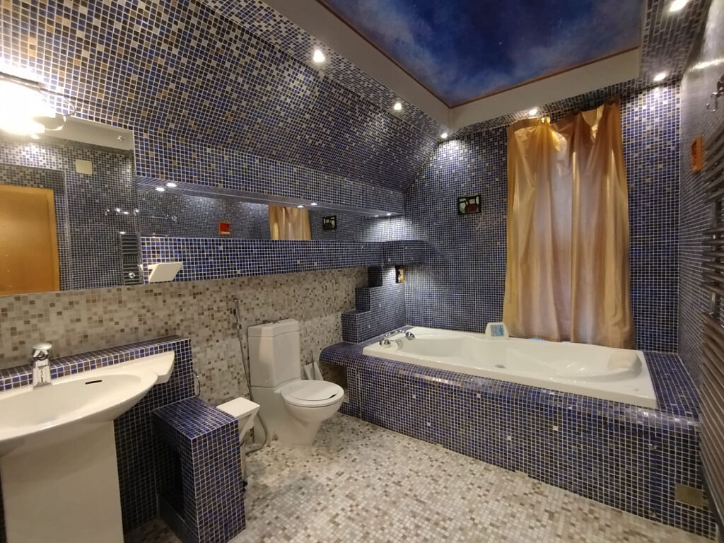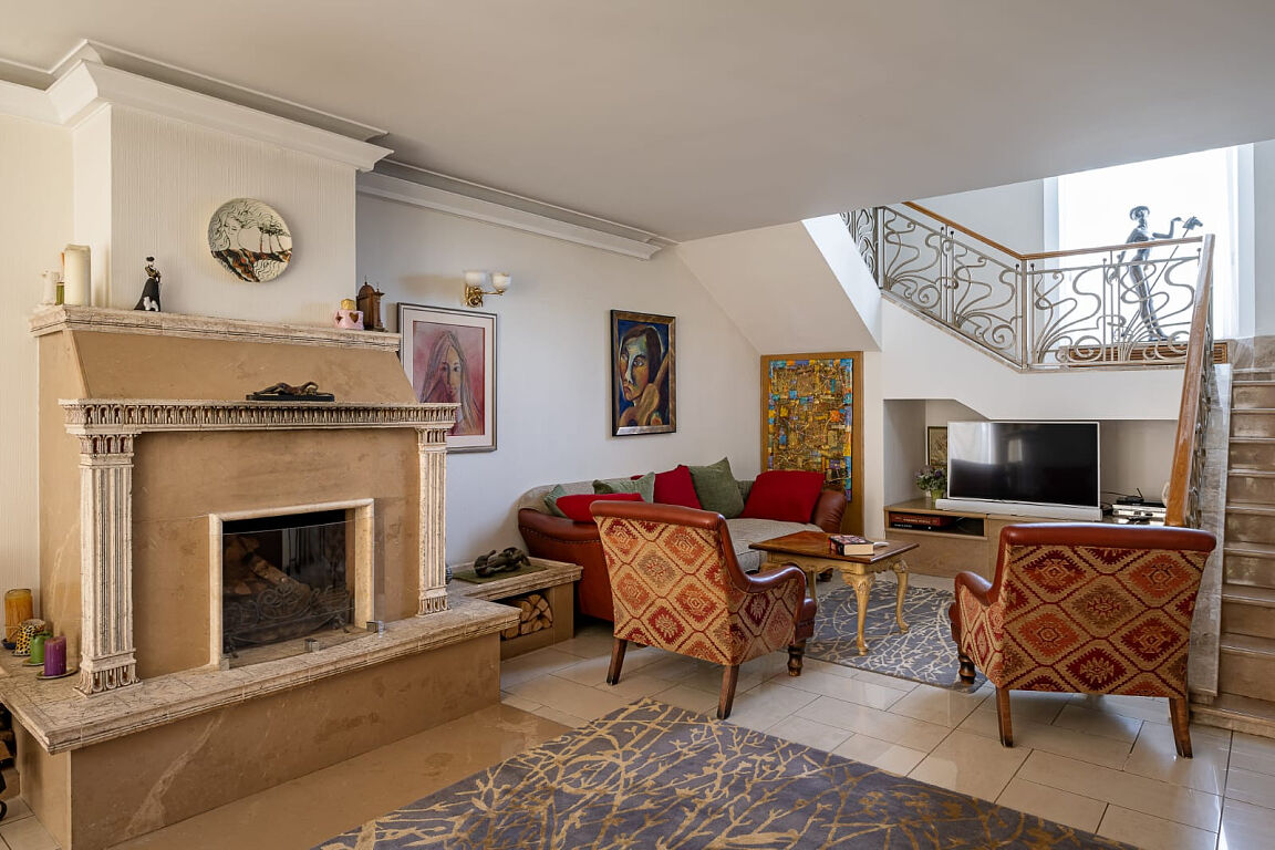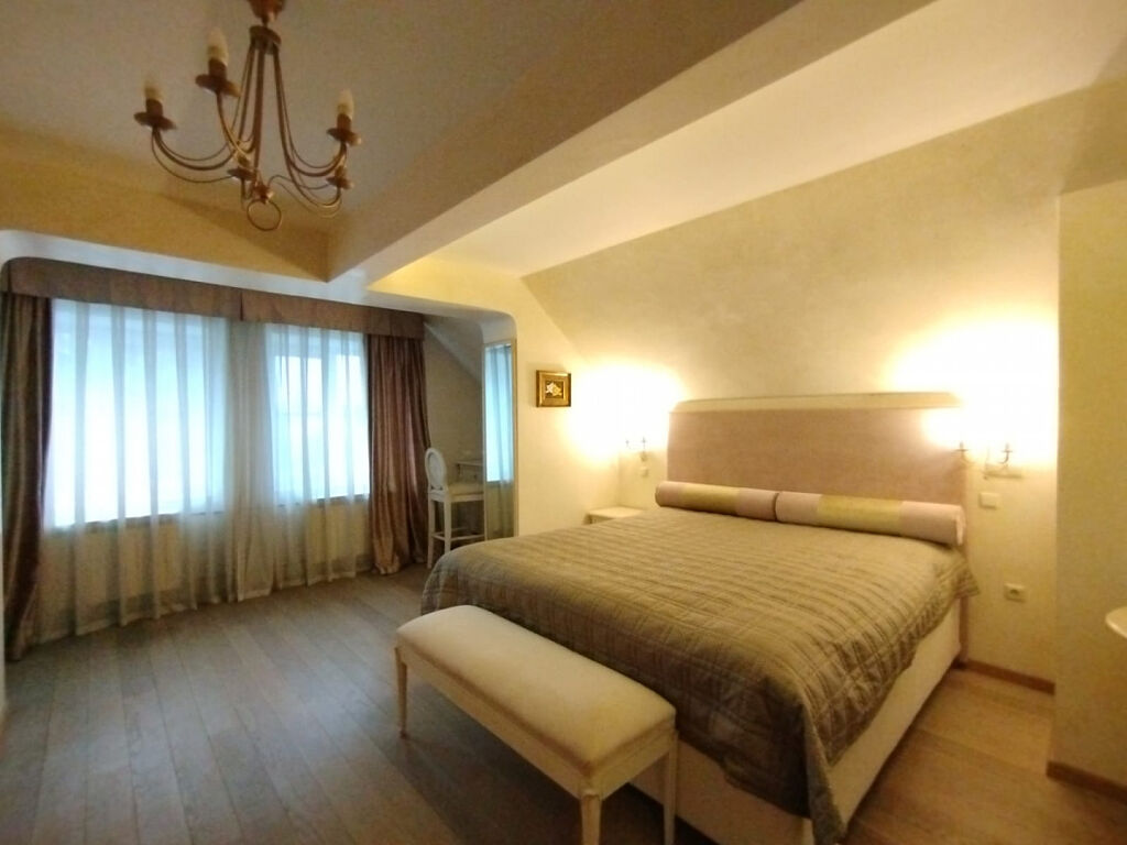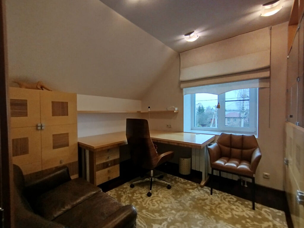 2 этаж: 2 мастер спальни, кабинет, гостиная; 3 мансардный этаж - 2 спальни с гардеробными, санузел, в доме есть подвал, в котором оборудован винный погреб, котельная.