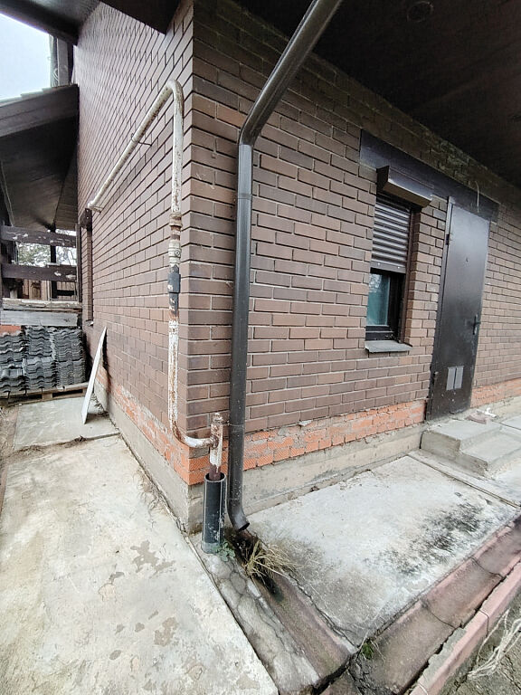 Стены шириной 58см из кирпича, затем утепление пеноплексом и облицовка кирпичом шоколадного цвета, в доме очень тепло зимой и прохладно летом! Фундамент ленточный монолит железобетонный, крыша двухскатная, покрыта черепицей Braas.