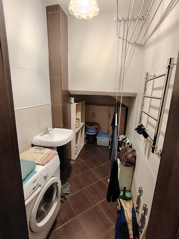На первом этаже прихожая, гардеробная комната, санузел с джакузи, прачечная, большая кухня гостиная, разделенная на три зоны , включая каминный зал со вторым светом, холодная комната, а также еще одна небольшая комната и котельная (газовый котел и фильтры для очистки воды установлены в 2024 году, бойлер). Отдельная дверь через которую попадаем в большой, теплый гараж на две машины, Из кухни отдельный выход на большую веранду.