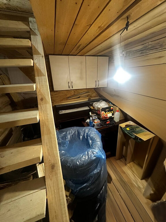 Дом полностью утеплён, с готовой электрикой и газом по границе участка. На первом этаже — ванная, отдельный туалет, парная с печкой, гостевая и пристроенная кухня — удобная и функциональная, с выходом на участок. На втором — две светлые комнаты, коридор и чердак в полный рост. Изюминка — балкон с панорамным видом на лес.