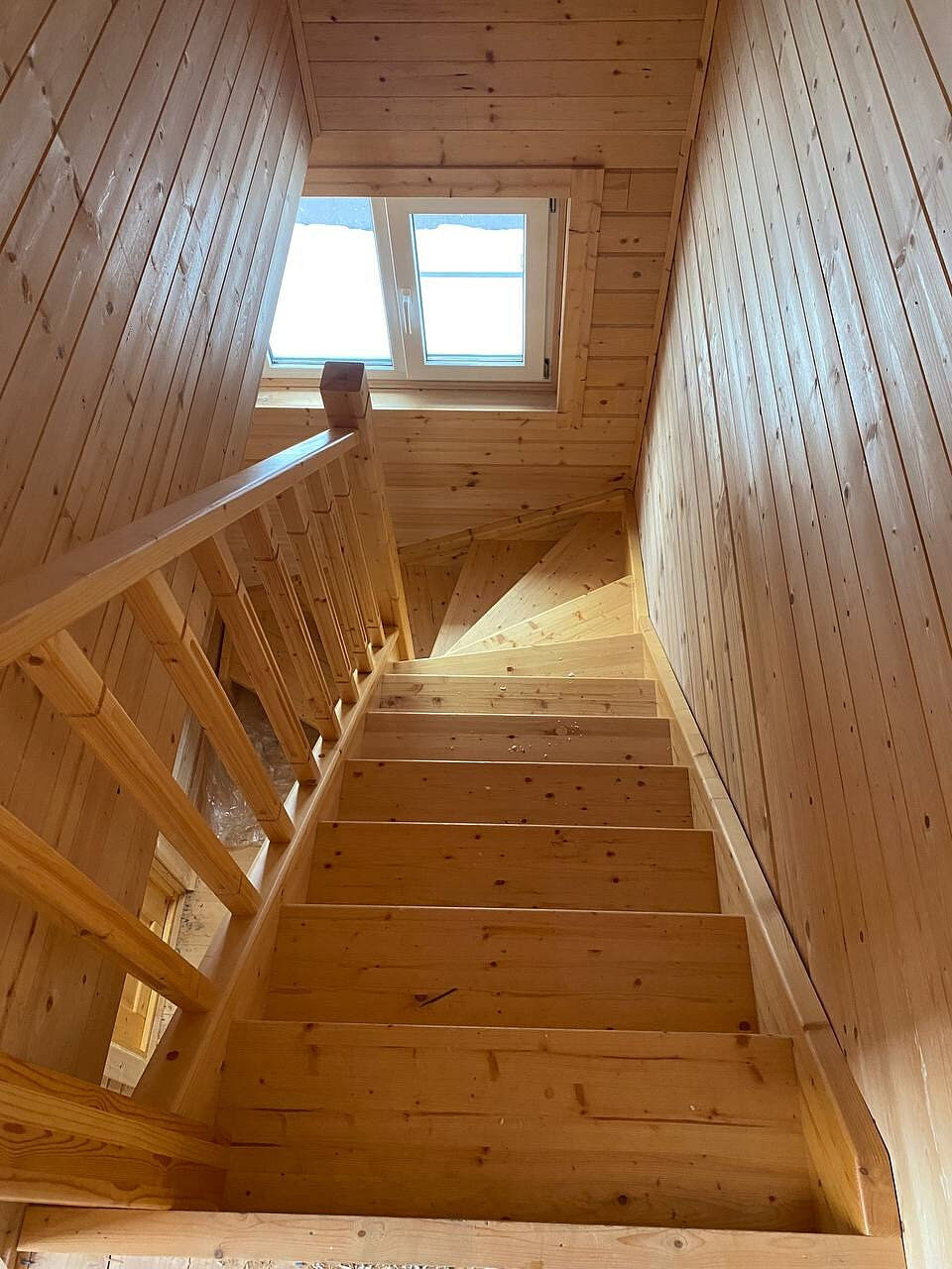 В доме 5 спален, одна из них на первом этаже. Гостиная с выходом на большую веранду 3х5. Светлая кухня. Удобная лестница на второй этаж.