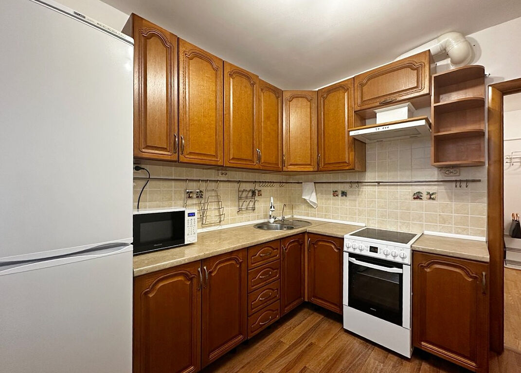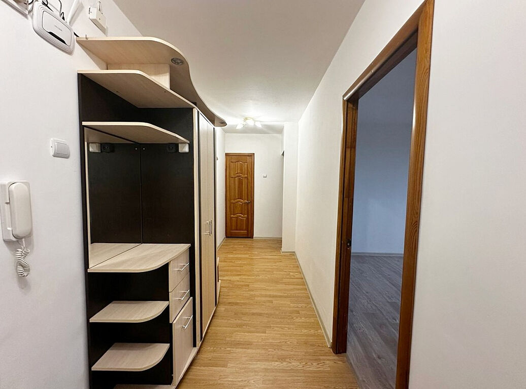 Большая кухня с выходом на застекленную лоджию, комнаты изолированные, с/узел раздельный, есть гардеробная комната.