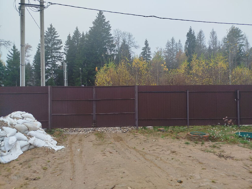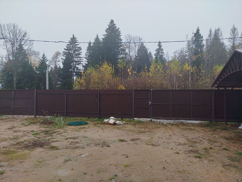 На въезде 2 ворот (одни ворота откатные, с пультом управления, вторые распашные), перед воротами оборудована стоянка.