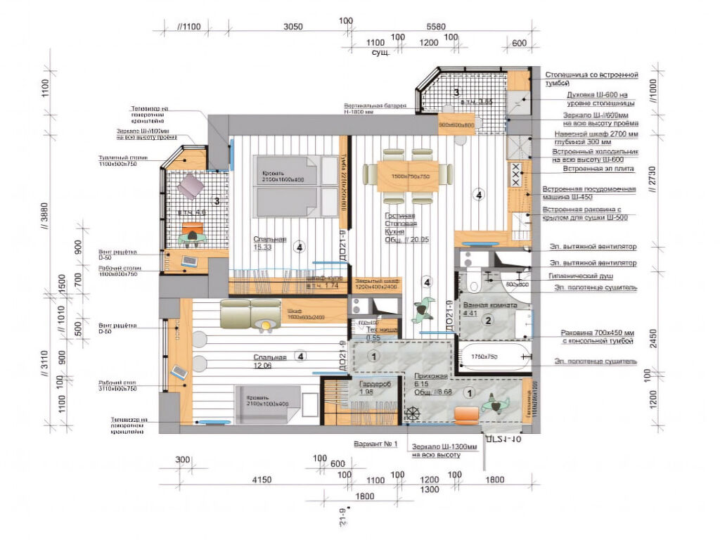 + Пространство для жизни и любви: Большая кухня-гостиная (20 м²), где так приятно собираться за ужином всей семьёй.