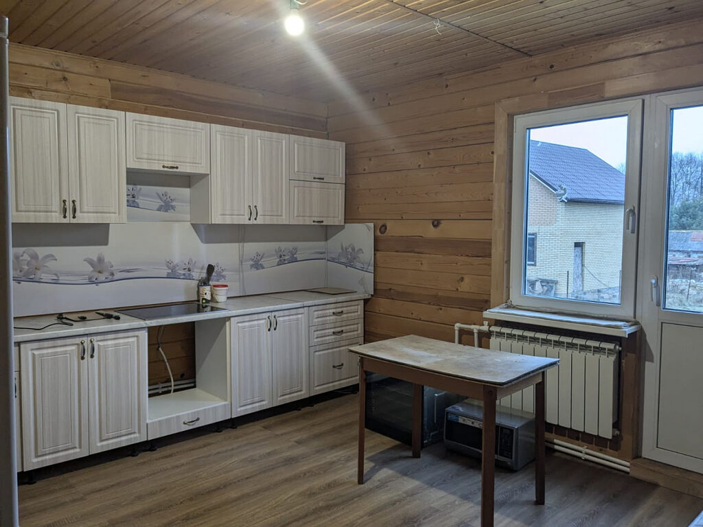 В просторном, уютном доме из бруса (200х200) продается 1/2 доля. Экологически чисто и надежно! Есть все для круглогодичного проживания-свет 15 кВт, вода скважина и септик. Газ по границе участка, который можно подключить в любое время. Утеплен как пол, так и крыша. Фундамент-ленточный, крыша-металлочерепица, на окнах - двухкамерные стеклопакеты. В доме имеется три спальни просторная кухня.