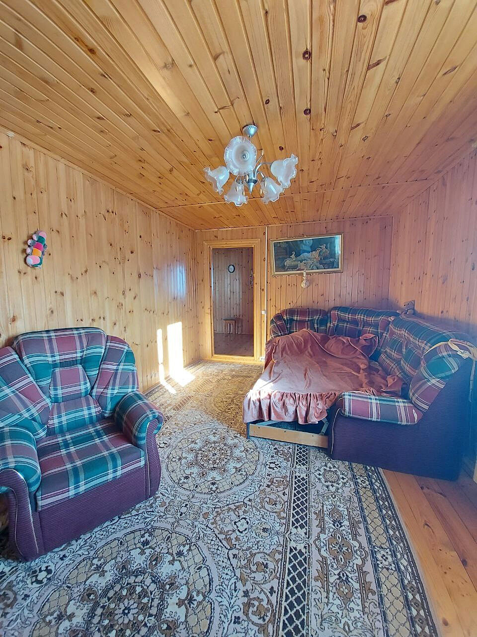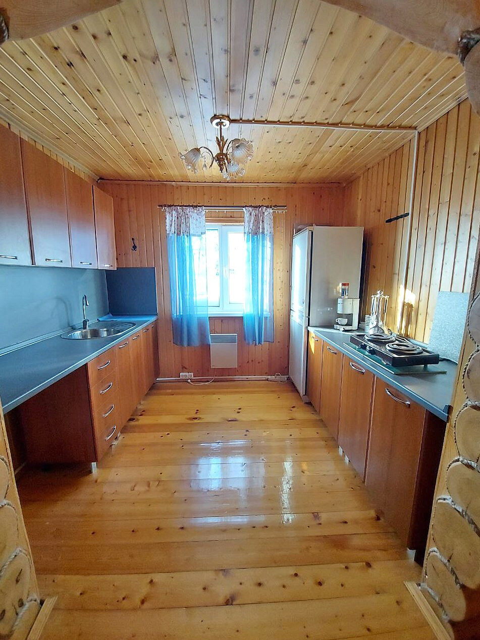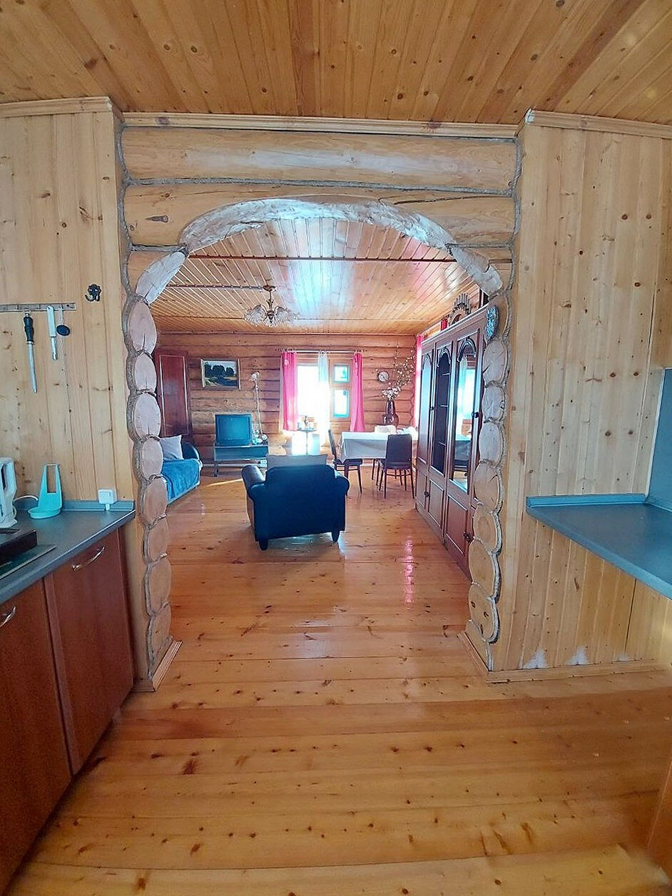 1 этаж: кухня гостиная просторная и теплая, небольшая спальня.