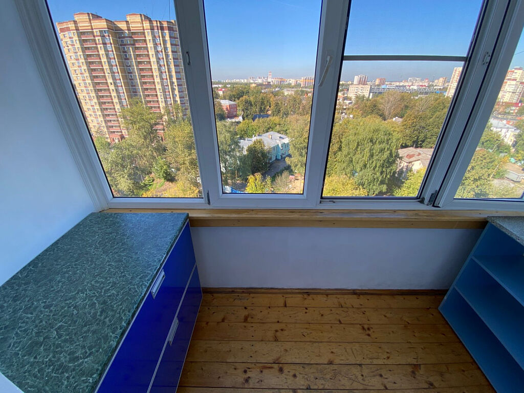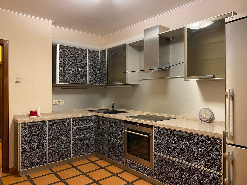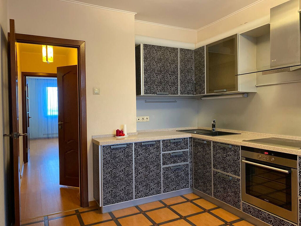 Общая площадь квартиры 55 м2 плюс две лоджии, кухня площадью 11,5 м2, с выходом на лоджию, оснащена кухонным гарнитуром "Дриада" с капитальной столешницей из искусственного камня, фартук ламинированный алюминий, шкафы с доводчиками, верхние с газлифтами blum, техникой (холодильник LIEBHERR, электроплита и духовка SIEMENS, вытяжка JETAIR), на полу плитка Монтана, изолированные комнаты 17,1 м2 и 13,2 м2 с видом города из окон