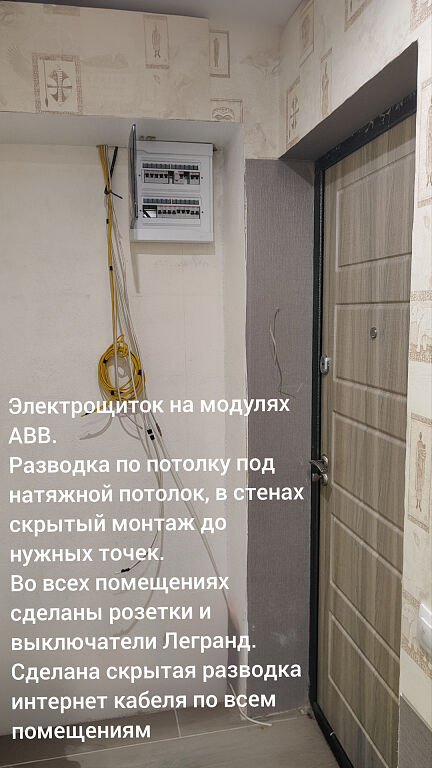 • полностью новая электрика (щиток ABB, розетки Legrand, интернет-кабель в комнатах)