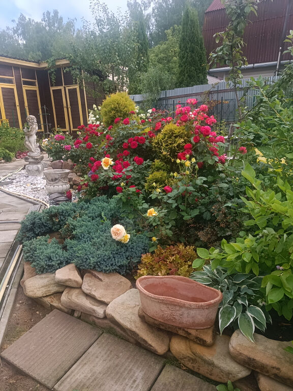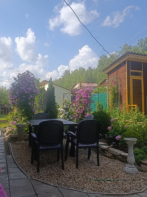 Прекрасный ухоженный участок, высажены плодовые деревья и кустарники: из плодовых культур растут малина смородина крыжовник, крыжовник , 5 кустов голубики, жимолость. Молодые груша, вишня , яблоня. Декоративные культуры : розы, клематисы, гортензия пионы, хосты и др.