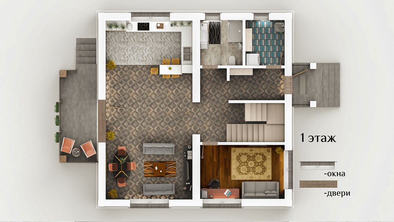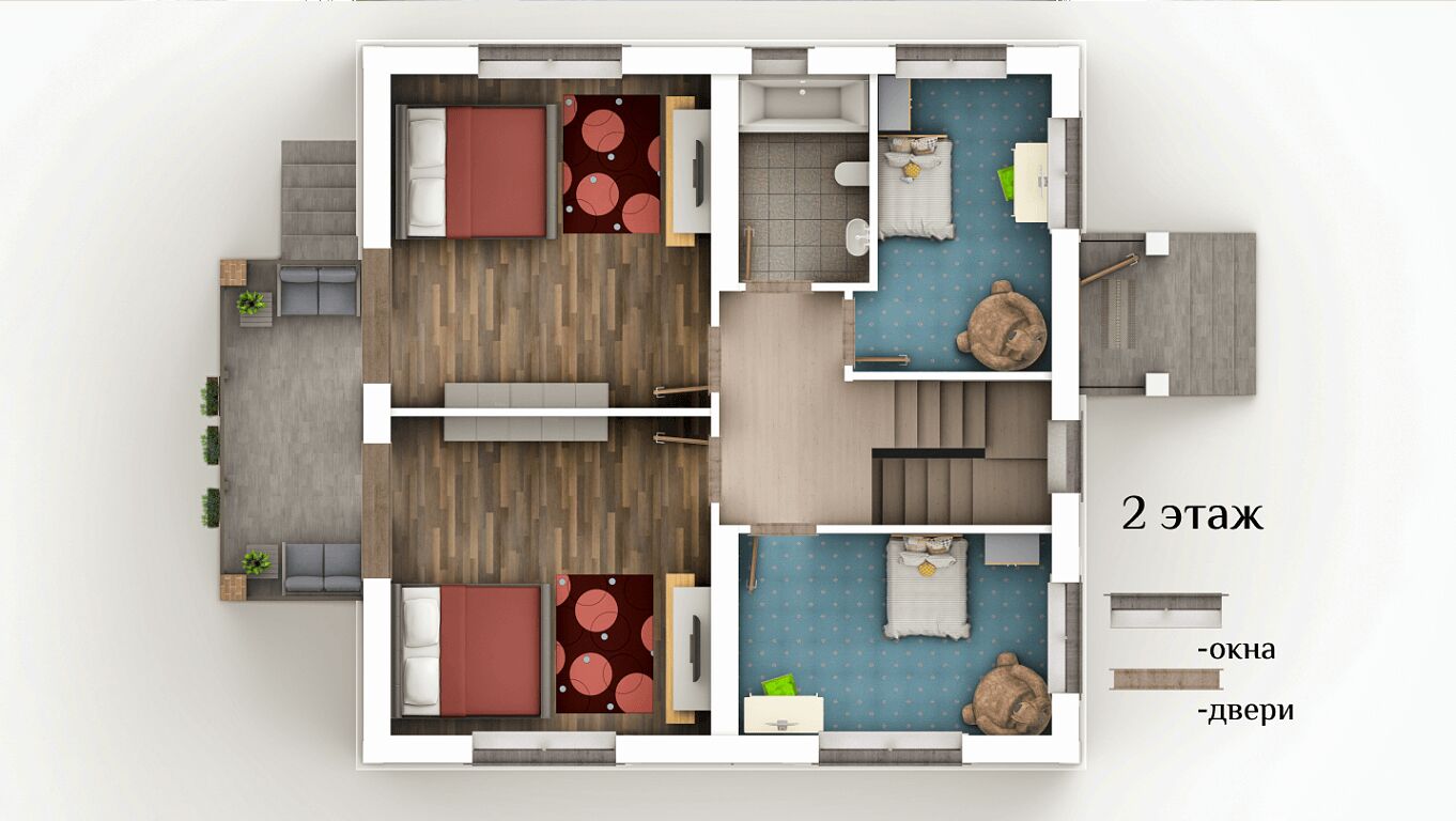 ПЛАНИРОВКА И МАТЕРИАЛЫ: дом площадью 174 кв.м. Архитектурный план включает в себя два уровня с функциональным распределением пространства. На первом этаже располагается уютная терраса, просторная кухня, вместительный коридор, жилая комната с возможностью организации зоны отдыха, котельная и современно оборудованный санузел. Второй этаж предлагает четыре комфортабельные спальни, второй санузел, ходовую зону и балкон, с которого открывается живописный вид на окружающую местность.