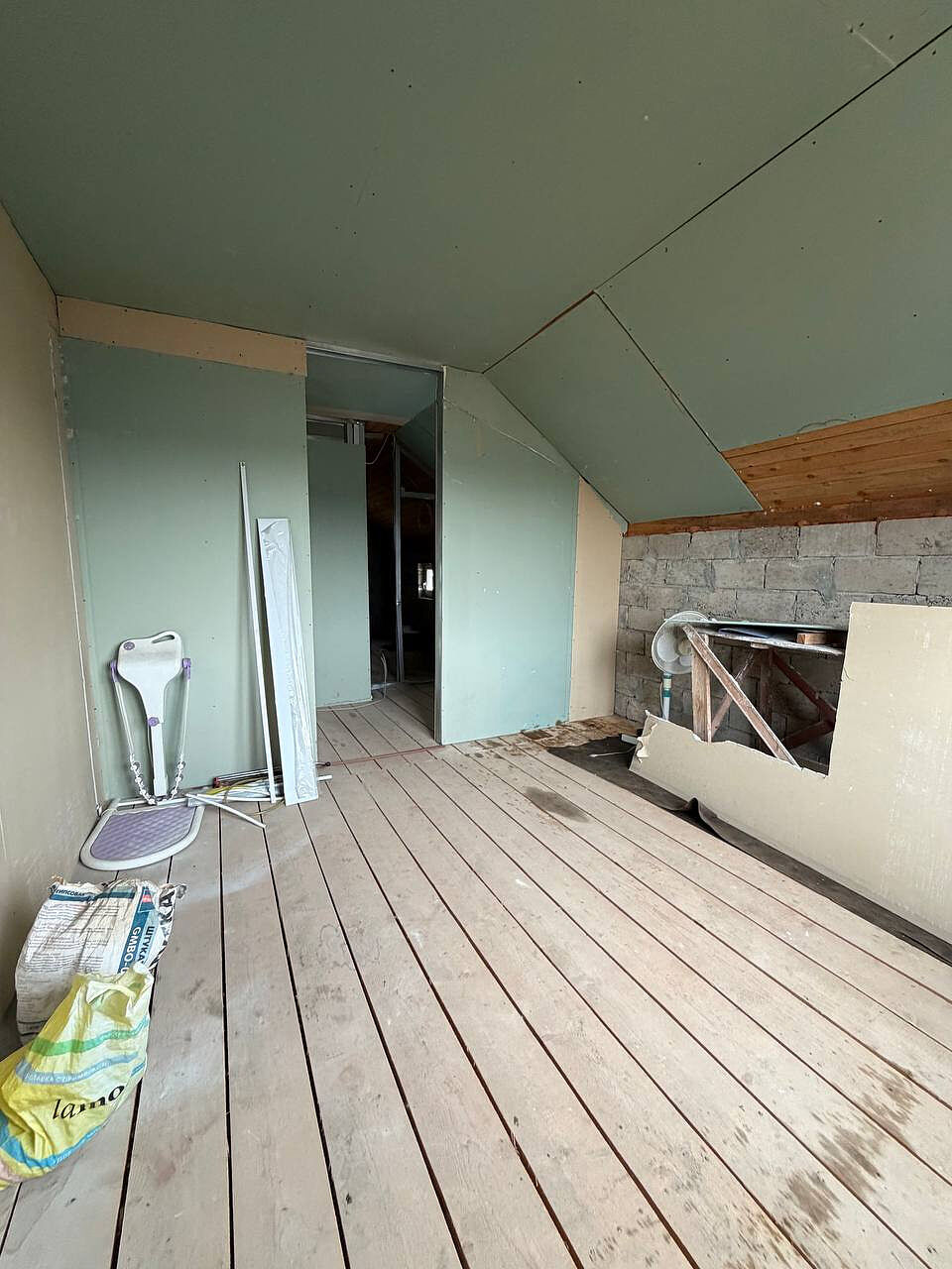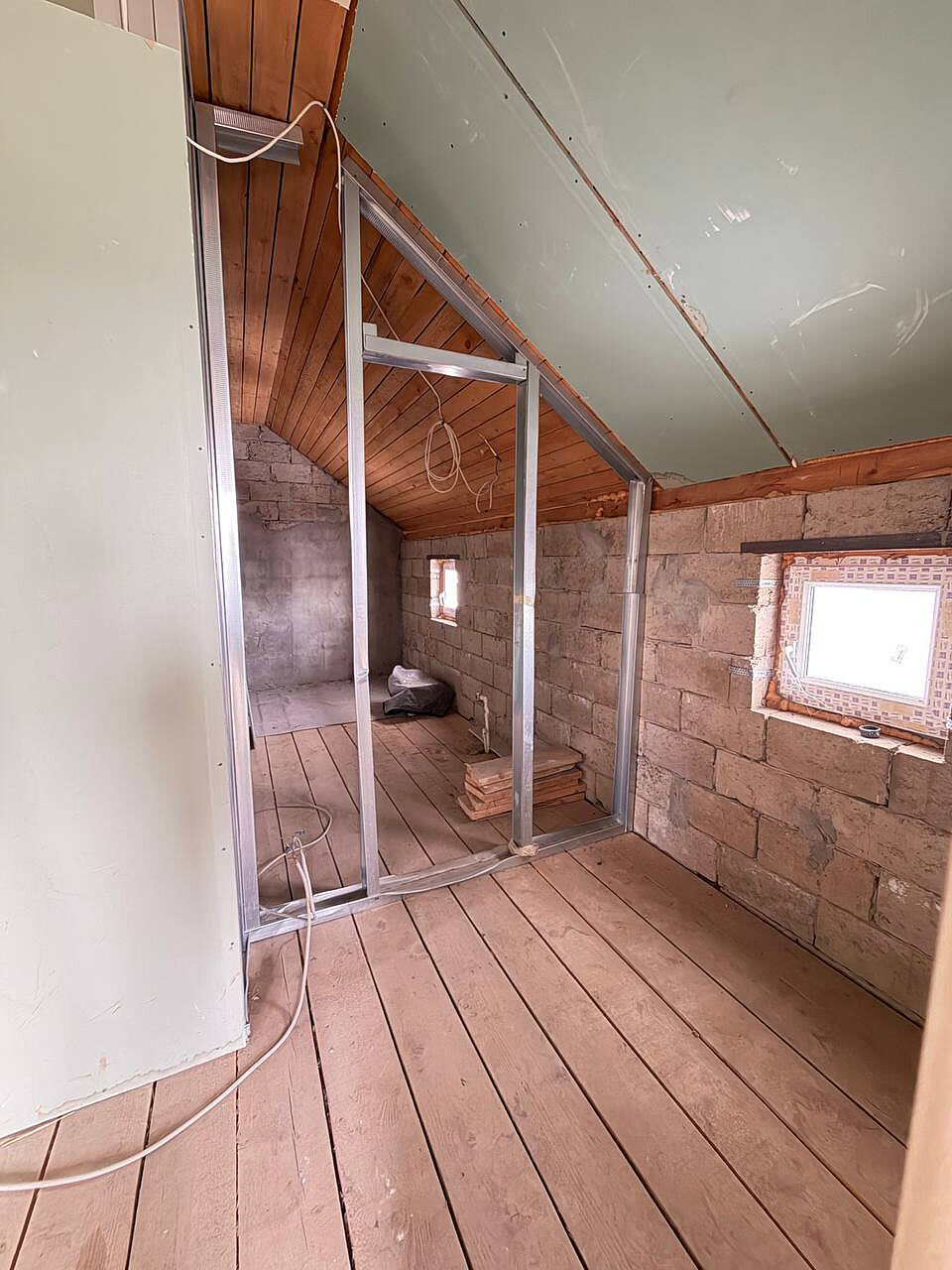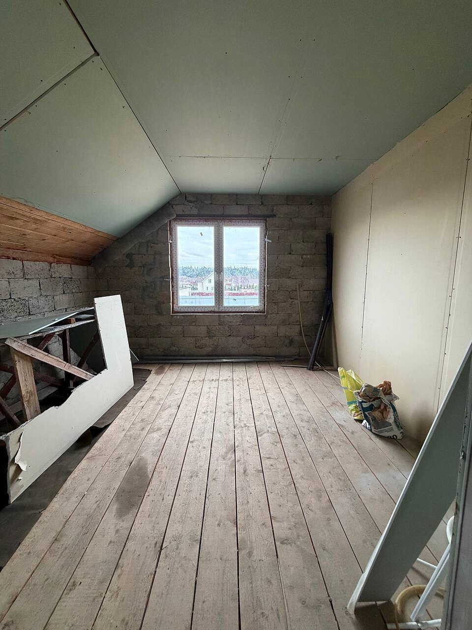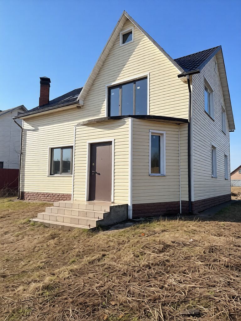 Дом построен из блоков, двухэтажный с удобной планировкой (на первом этаже: прихожая, кухня- гостиная с камином, две изолированные комнаты, одна их них мастер-спальня с собственным выходом на улицу и санузлом. На втором этаже три изолированные комнаты и санузел). Дом зарегистрирован , как жилой , возможна прописка.