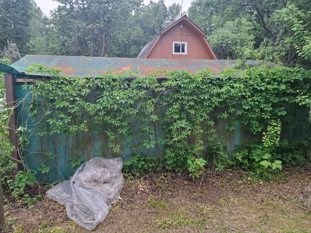 Участок ухоженный, сухой, правильной формы, своя калитка для выхода в лес. Высажены фруктовые деревья, Есть теплица, хоз.блок и металлический гараж.