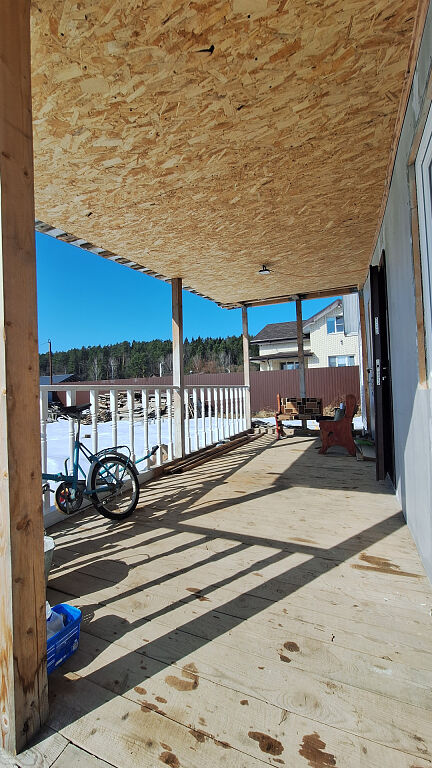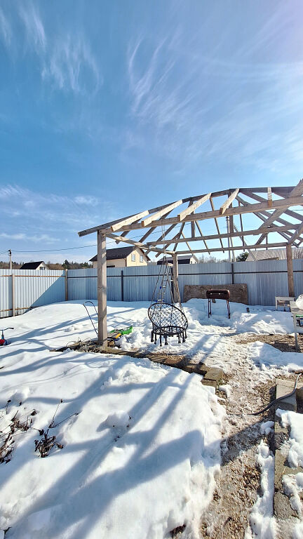Участок правильной формы, забор со всех сторон: профлист .Выполнена въездная группа, ворота ,калитка. Место для барбекю: каркас веранды.