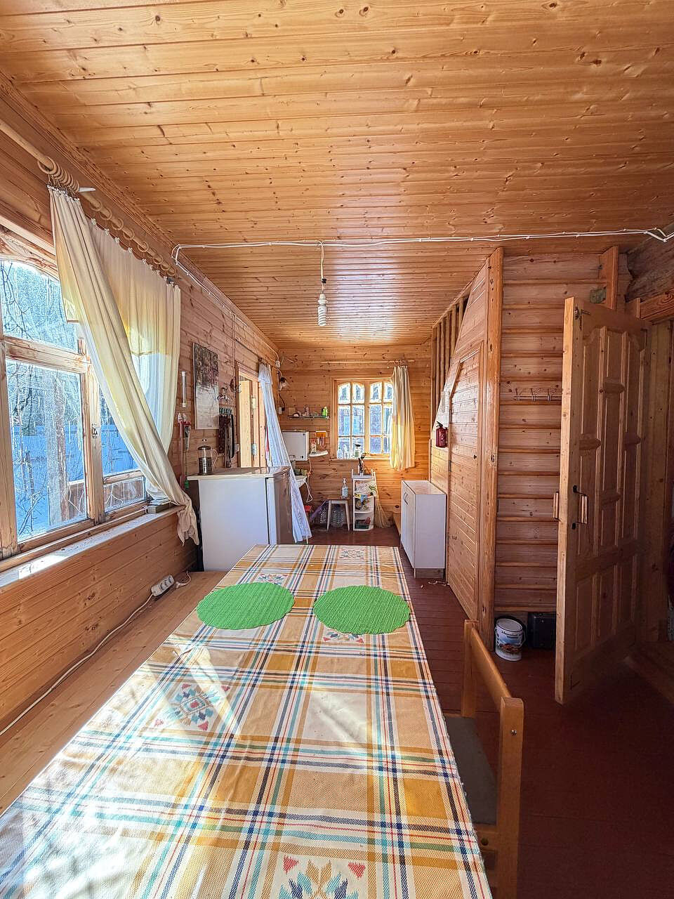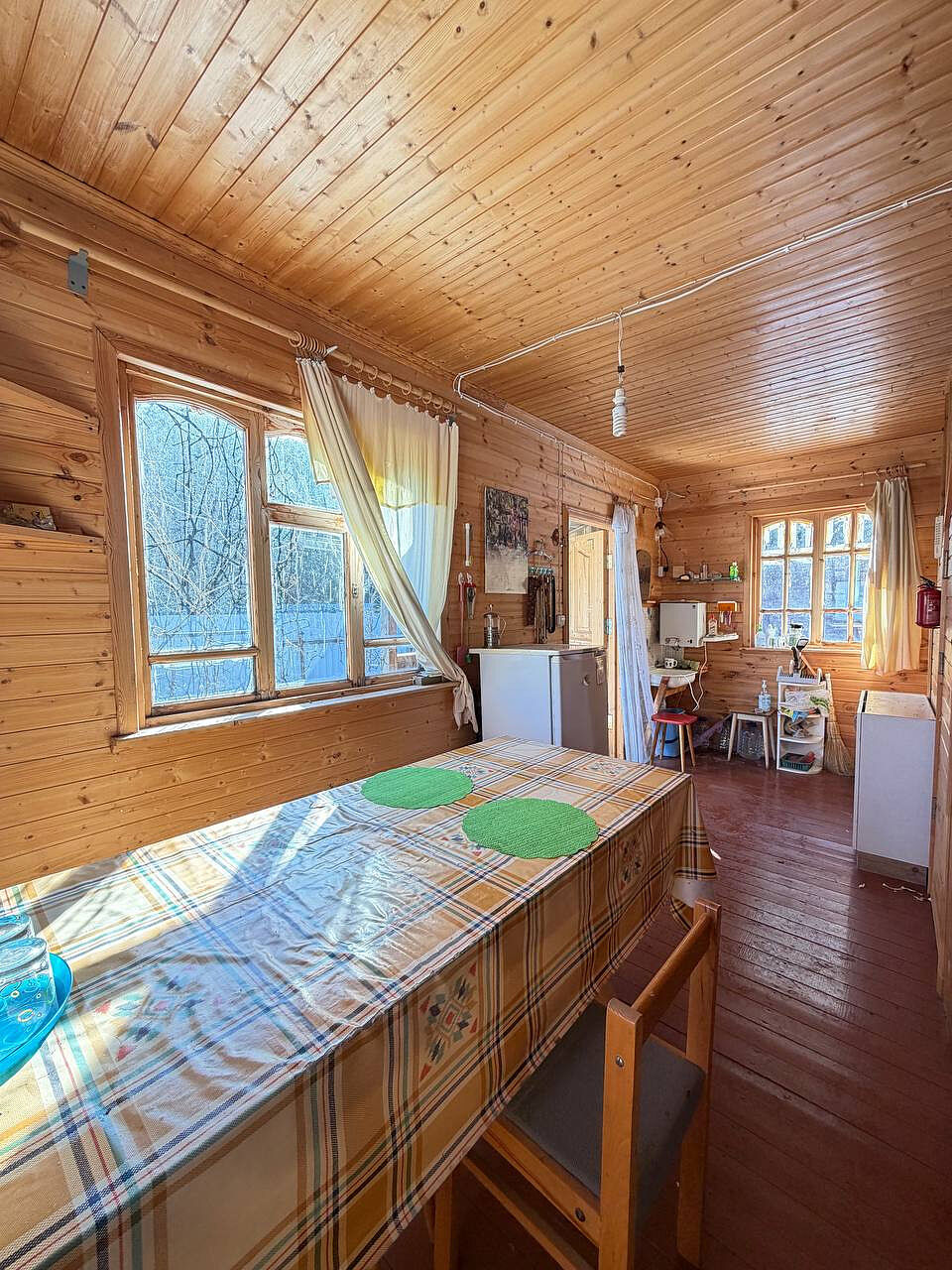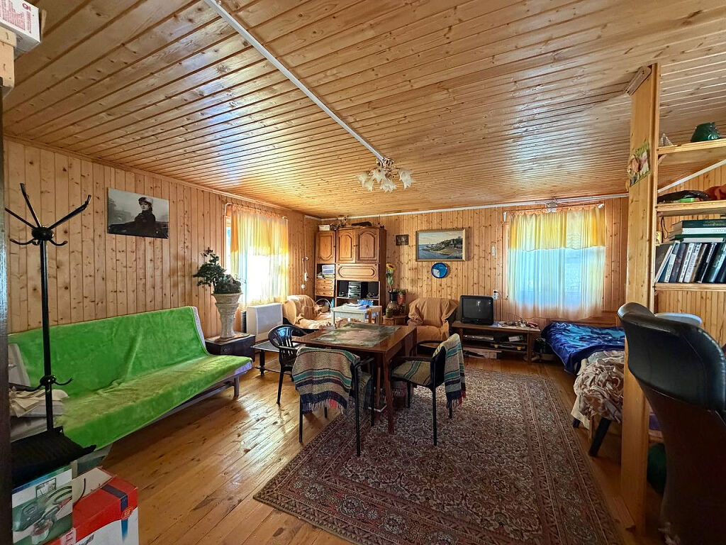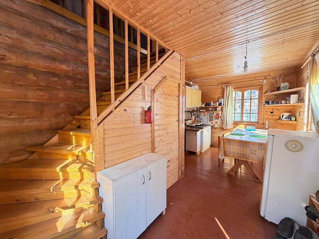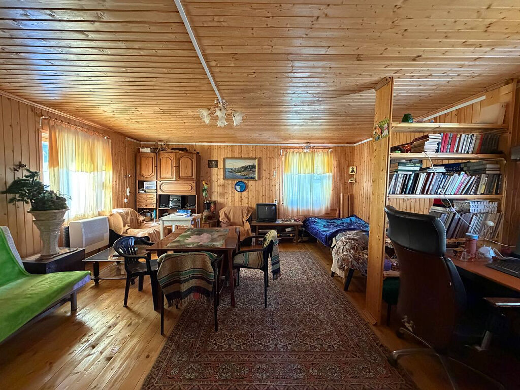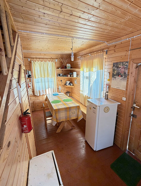 Дом построен из бревна, двухэтажный, с комфортной планировкой (на первом этаже просторная кухня, большая гостиная, место для хранения, на втором этаже две просторные изолированные комнаты).