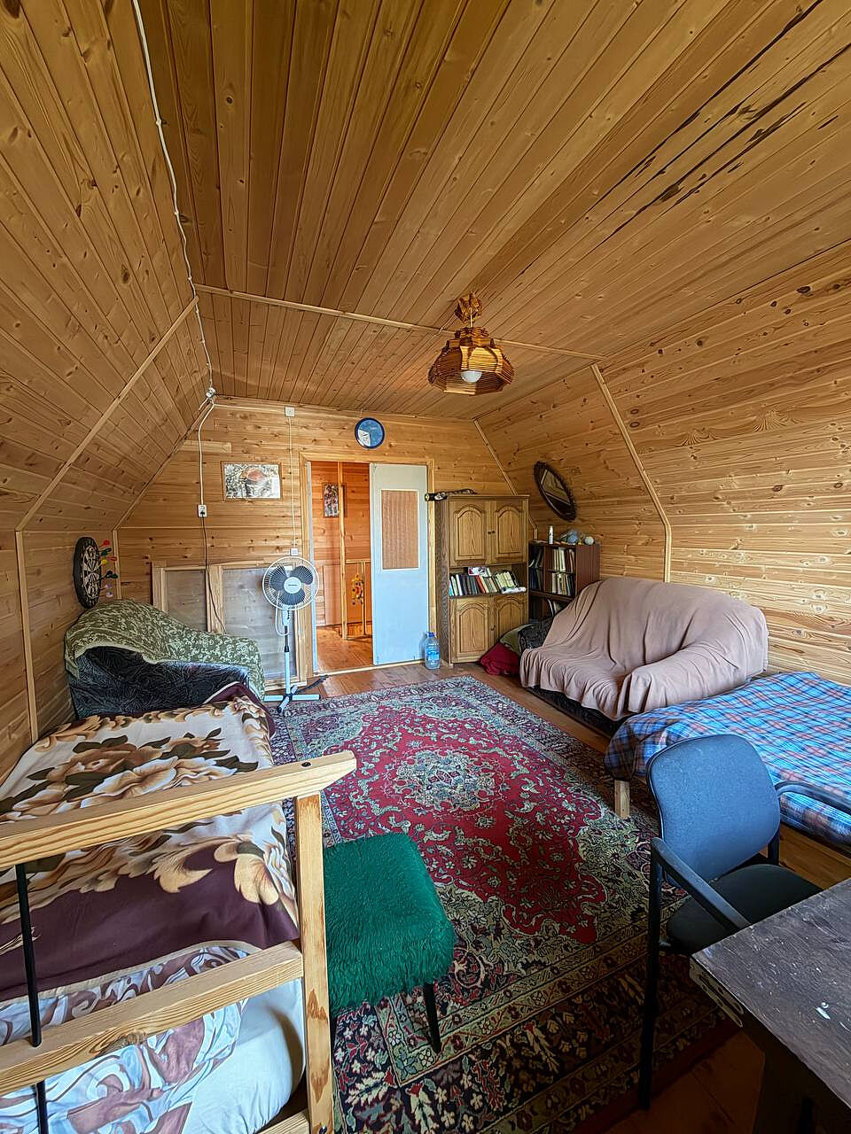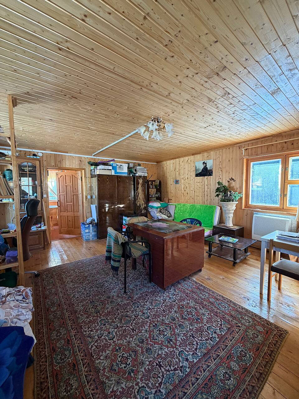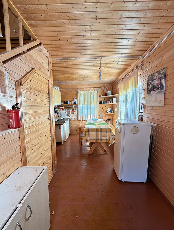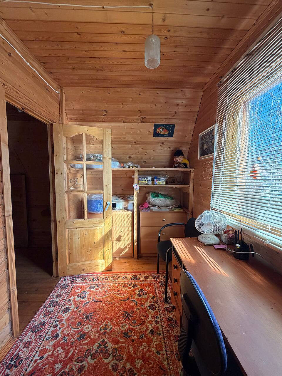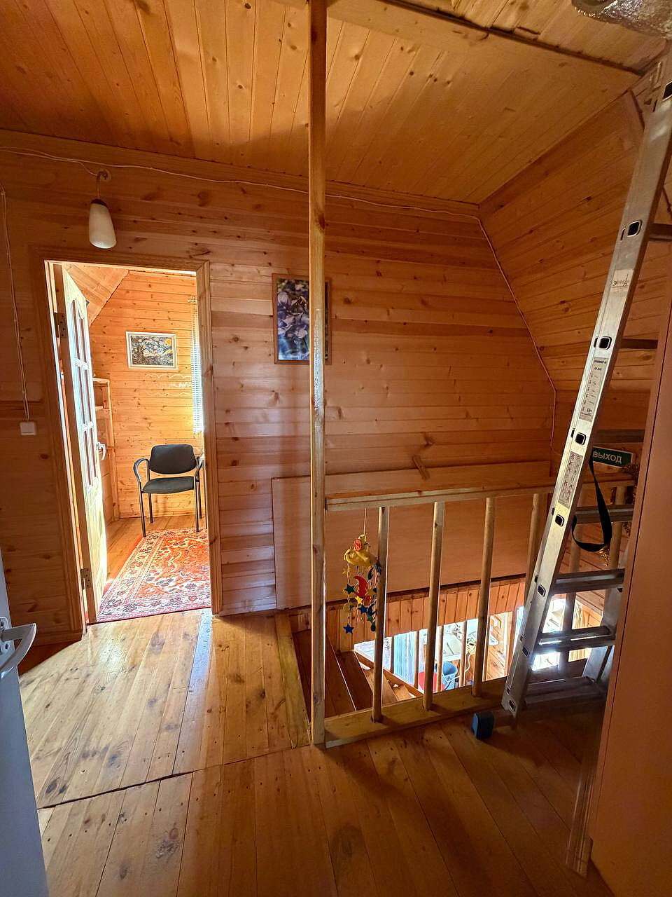 Дом построен из бревна, двухэтажный, с комфортной планировкой (на первом этаже просторная кухня, большая гостиная, место для хранения, на втором этаже две просторные изолированные комнаты).
