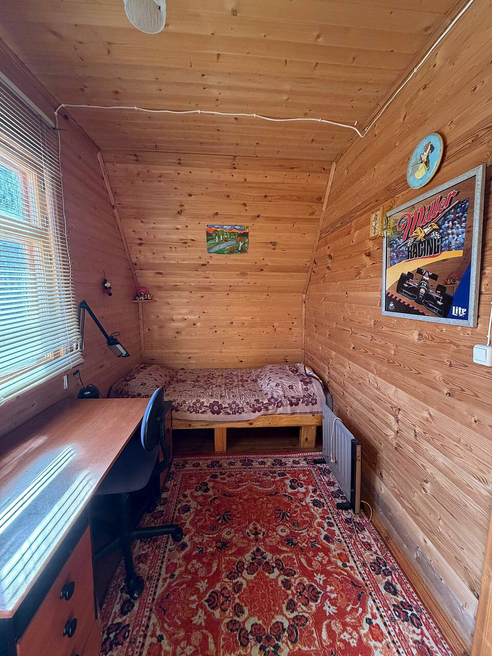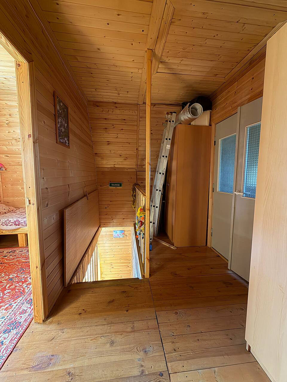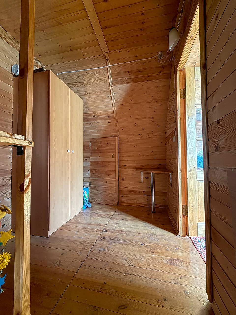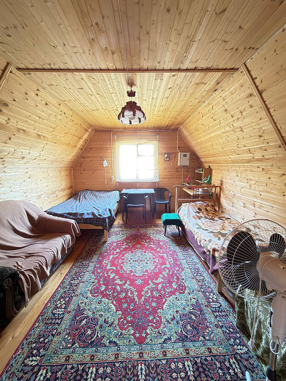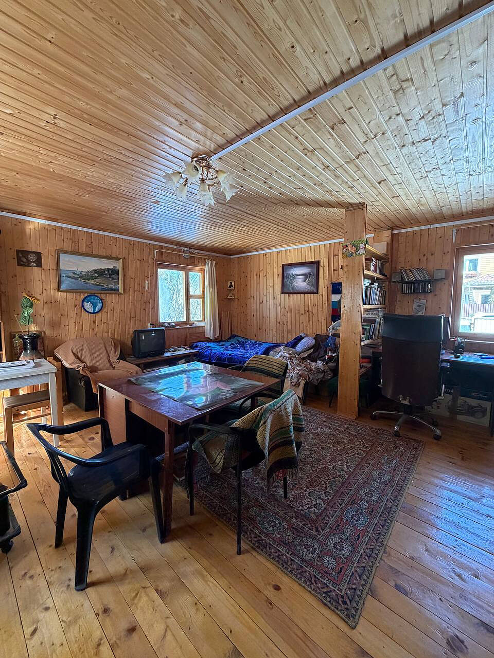 Дом построен из бревна, двухэтажный, с комфортной планировкой (на первом этаже просторная кухня, большая гостиная, место для хранения, на втором этаже две просторные изолированные комнаты).