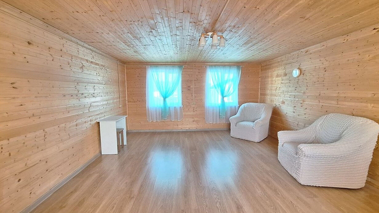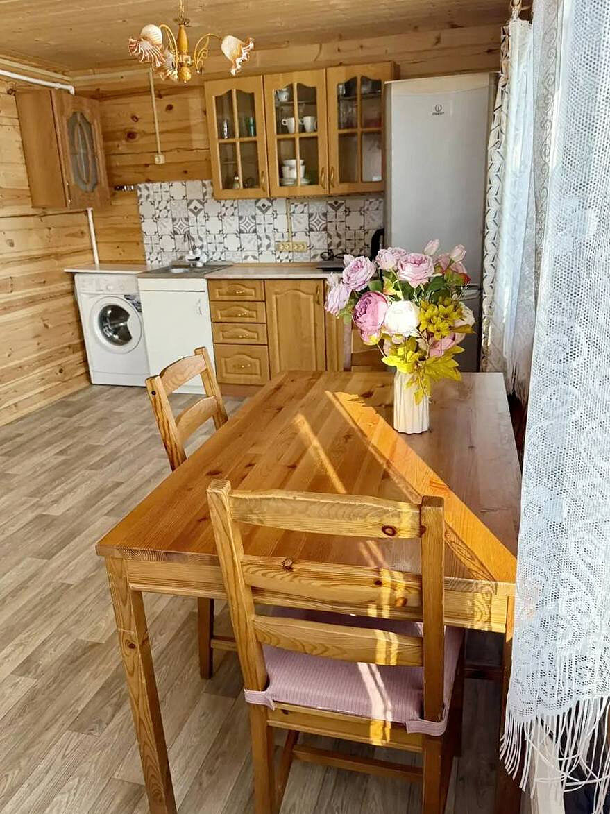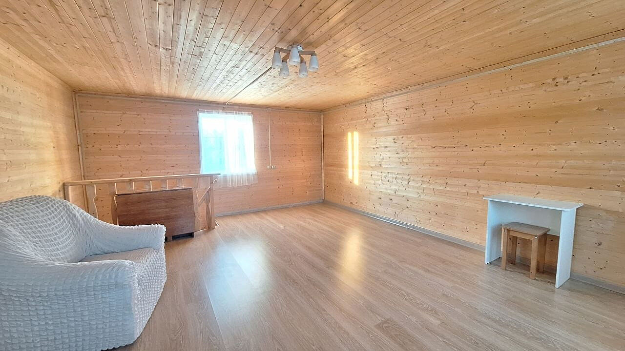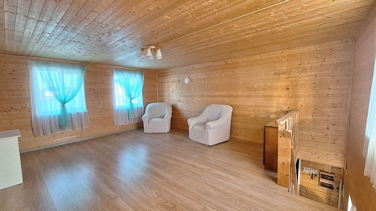 Дом двухэтажный, с комфортной планировкой (на первом этаже большая кухня-гостиная, спальня, санузел, на втором этаже просторная комната). Отличным бонусом является наличие большой террасы.