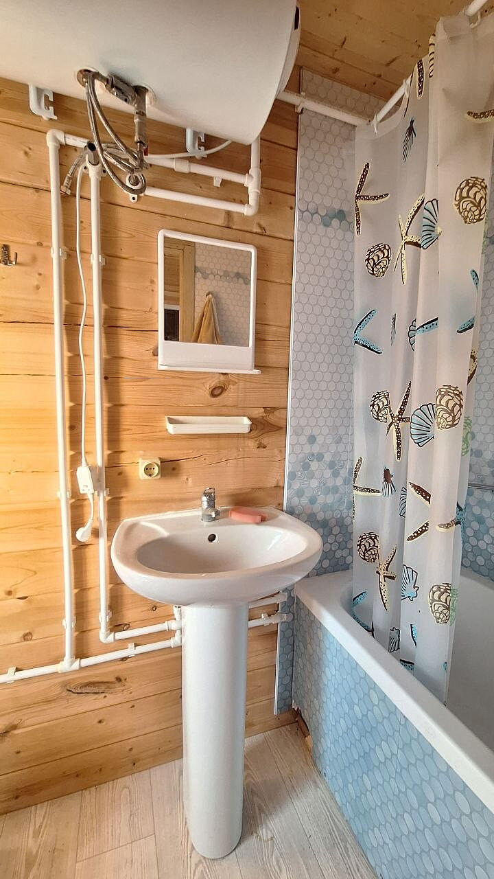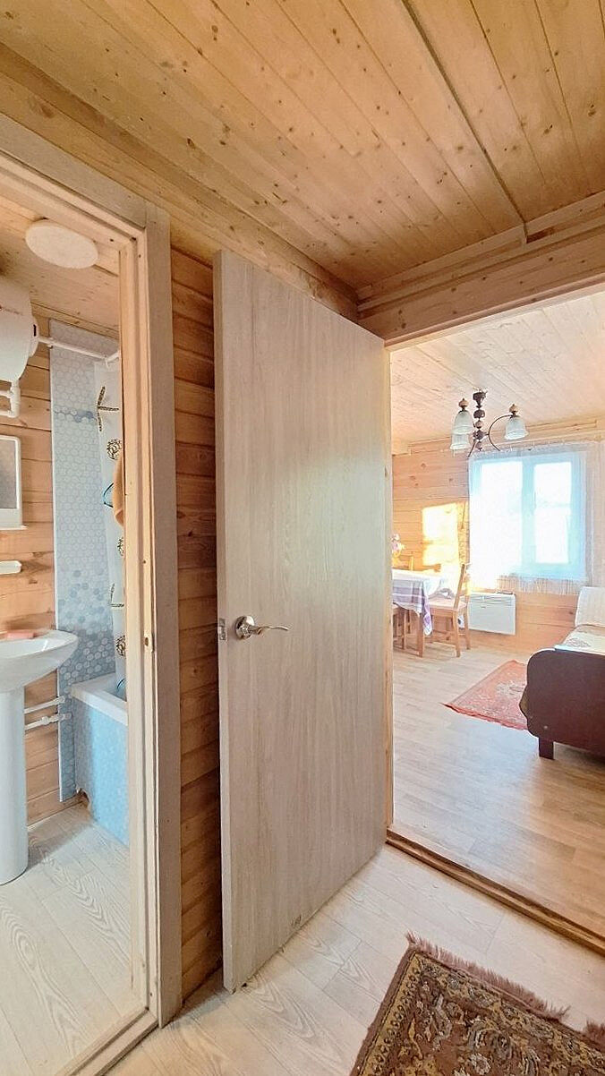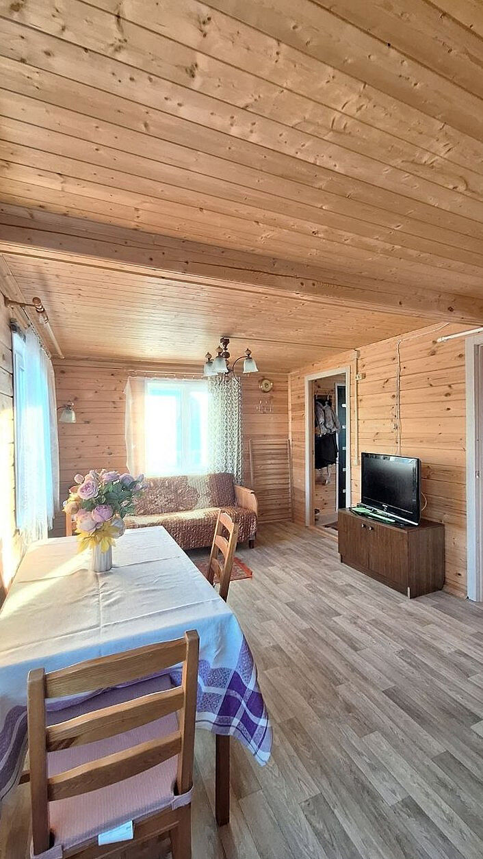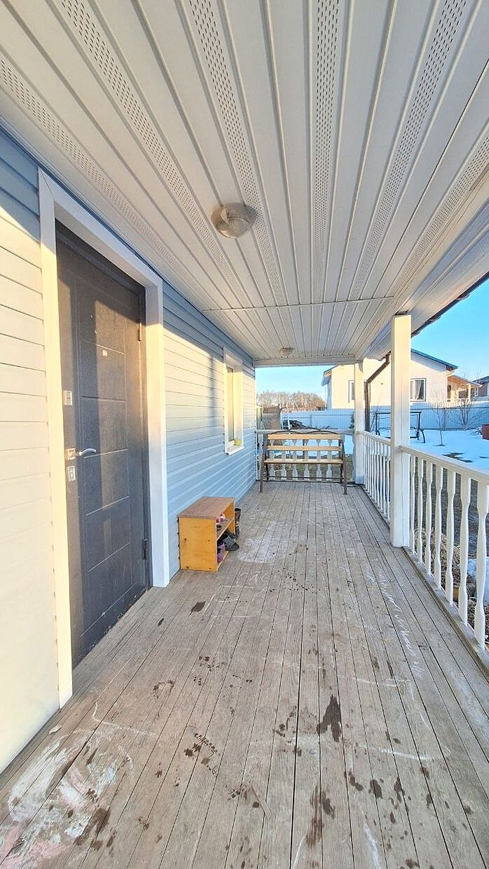 Дом двухэтажный, с комфортной планировкой (на первом этаже большая кухня-гостиная, спальня, санузел, на втором этаже просторная комната). Отличным бонусом является наличие большой террасы.