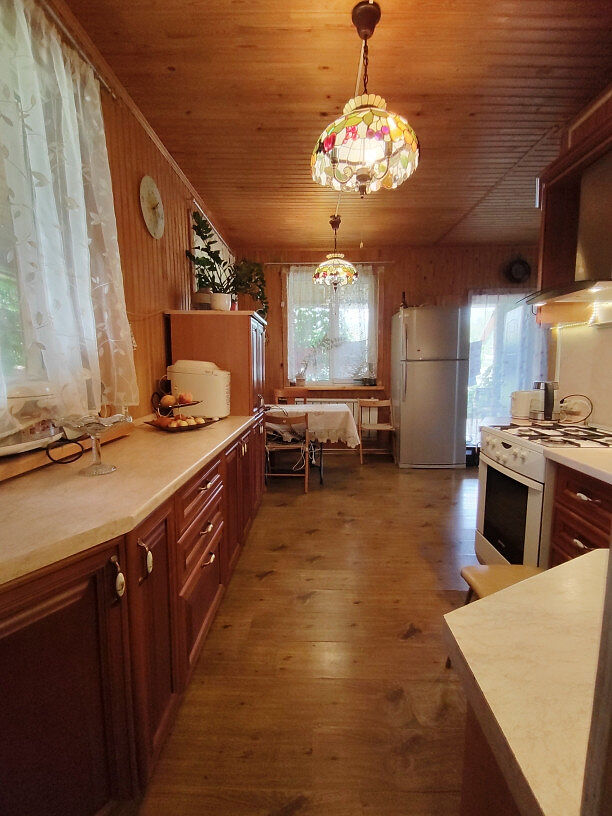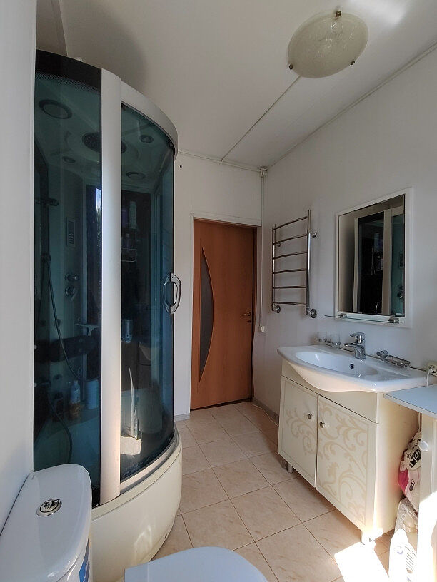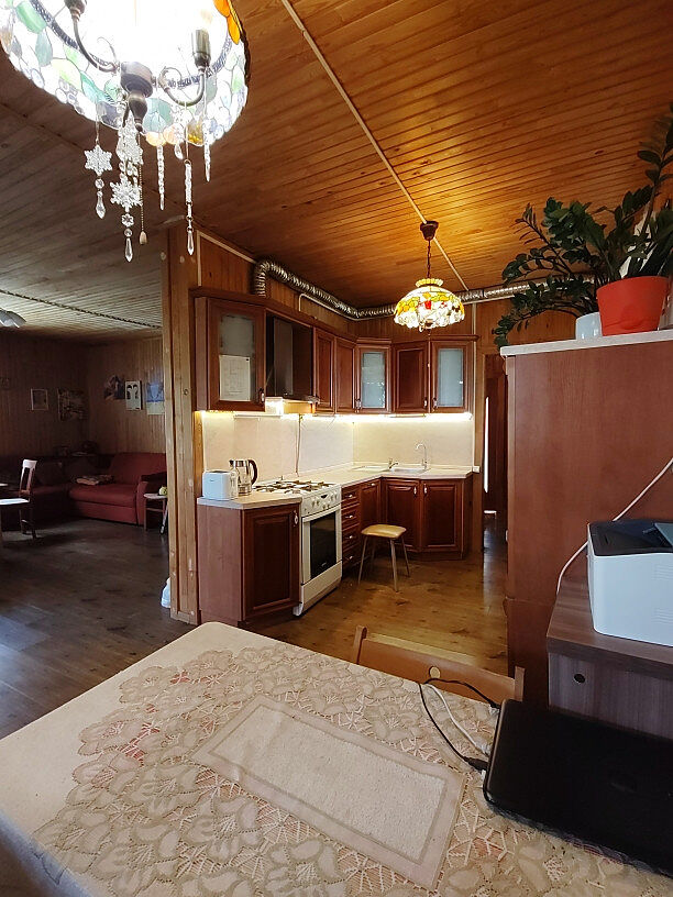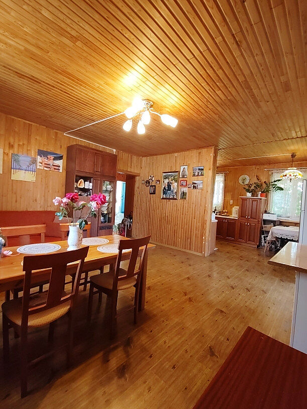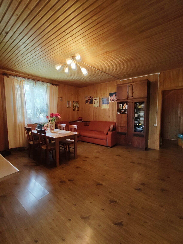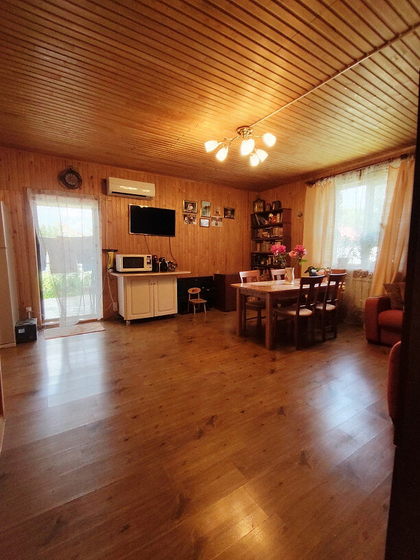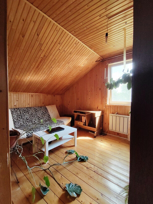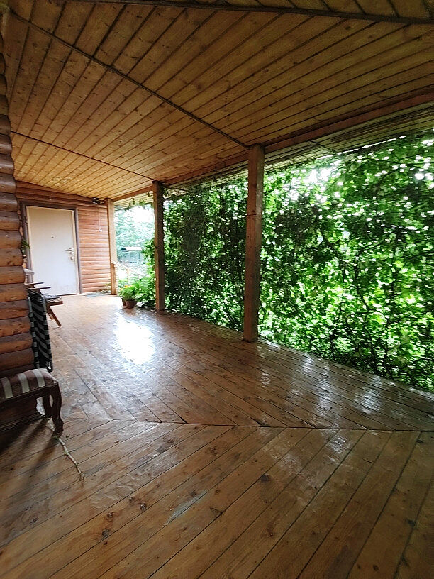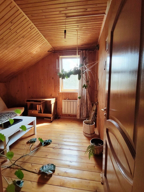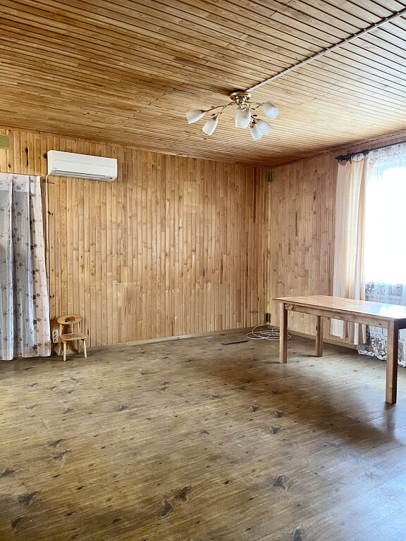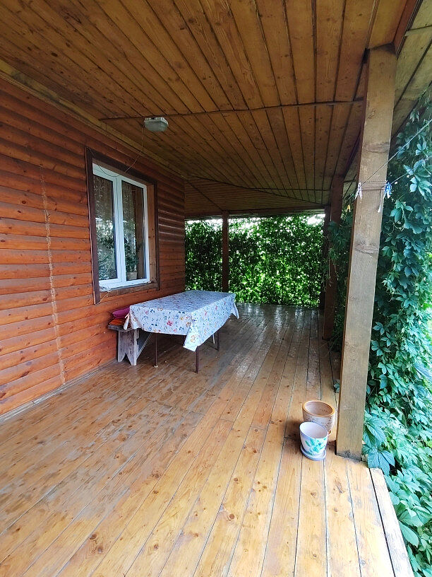 Материал: дом из бруса, утеплён минеральной ватой и обшит вагонкой