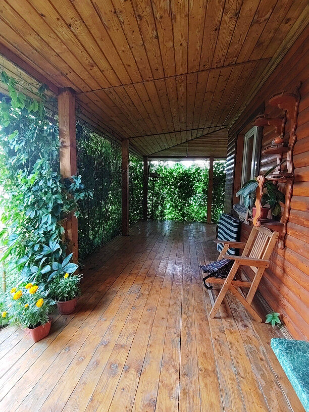 - Ухоженный участок с виноградной стеной (тень и уют)