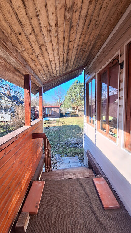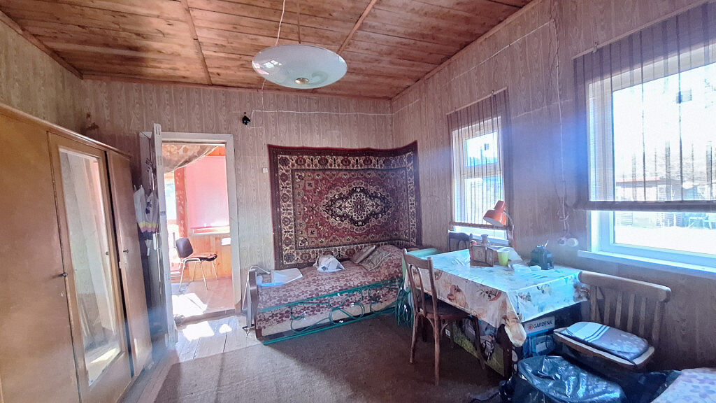 Просторная ,открытая терраса, кухня, две раздельные спальни. полы деревянные, крепкие ,высокие потолки.