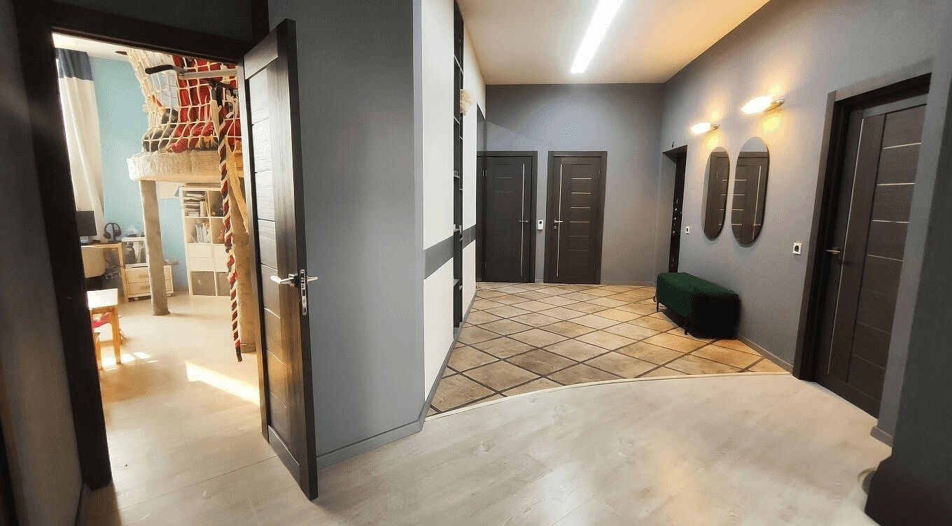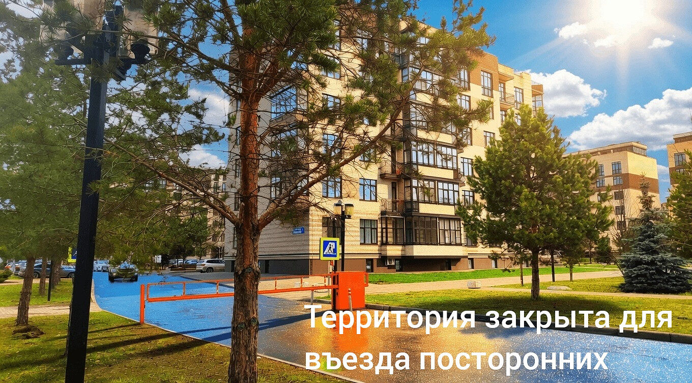 Дом монолитный, с современными входными группами и закрытой территорией под шлагбаумом. Во дворе — детские и спортивные площадки, много парковочных мест. Спокойные соседи и аккуратные общие зоны создают ощущение приватности и высокого уровня жизни.