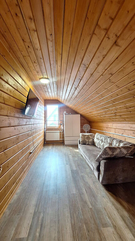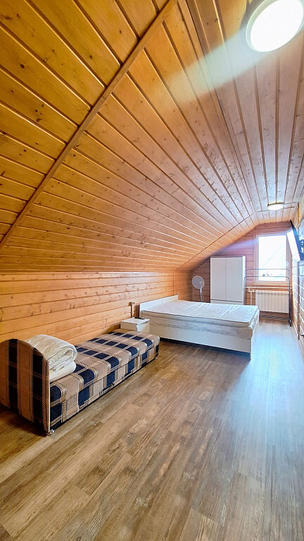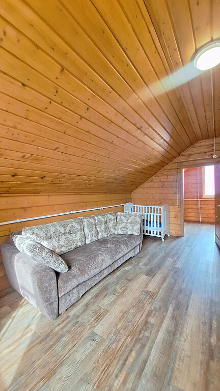 Дом, двухэтажный, с комфортной планировкой (на первом этаже: прихожая ,кухня-гостиная , санузел , на втором этаже : две изолированные спальни ).